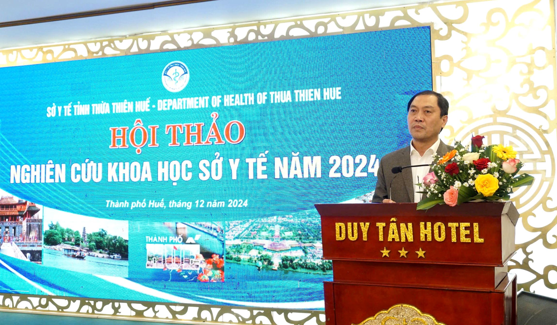 Ngày 13/12/2024, Sở Y tế tổ chức "Hội thảo nghiên cứu khoa học năm 2024", PGS.TS Trần Kiêm Hảo - Giám đốc Sở Y tế chủ trì hội thảo. Cùng tham dự có các Phó Giám đốc, các thành viên Hội đồng, Tổ thư ký Hội đồng Khoa học kỹ thuật Ngành Y tế, Trưởng/phó phòng, các chuyên viên của Văn phòng Sở Y tế. Đại diện Lãnh đạo, Phòng Kế hoạch tổng hợp, Thư ký hội đồng KHKT của 26 đơn vị là các BV Đa khoa/Chuyên khoa tuyến tỉnh, các đơn vị trực thuộc Sở Y tế, TTYT các huyện/thị xã/thành phố và các báo cáo viên cùng tham dự.