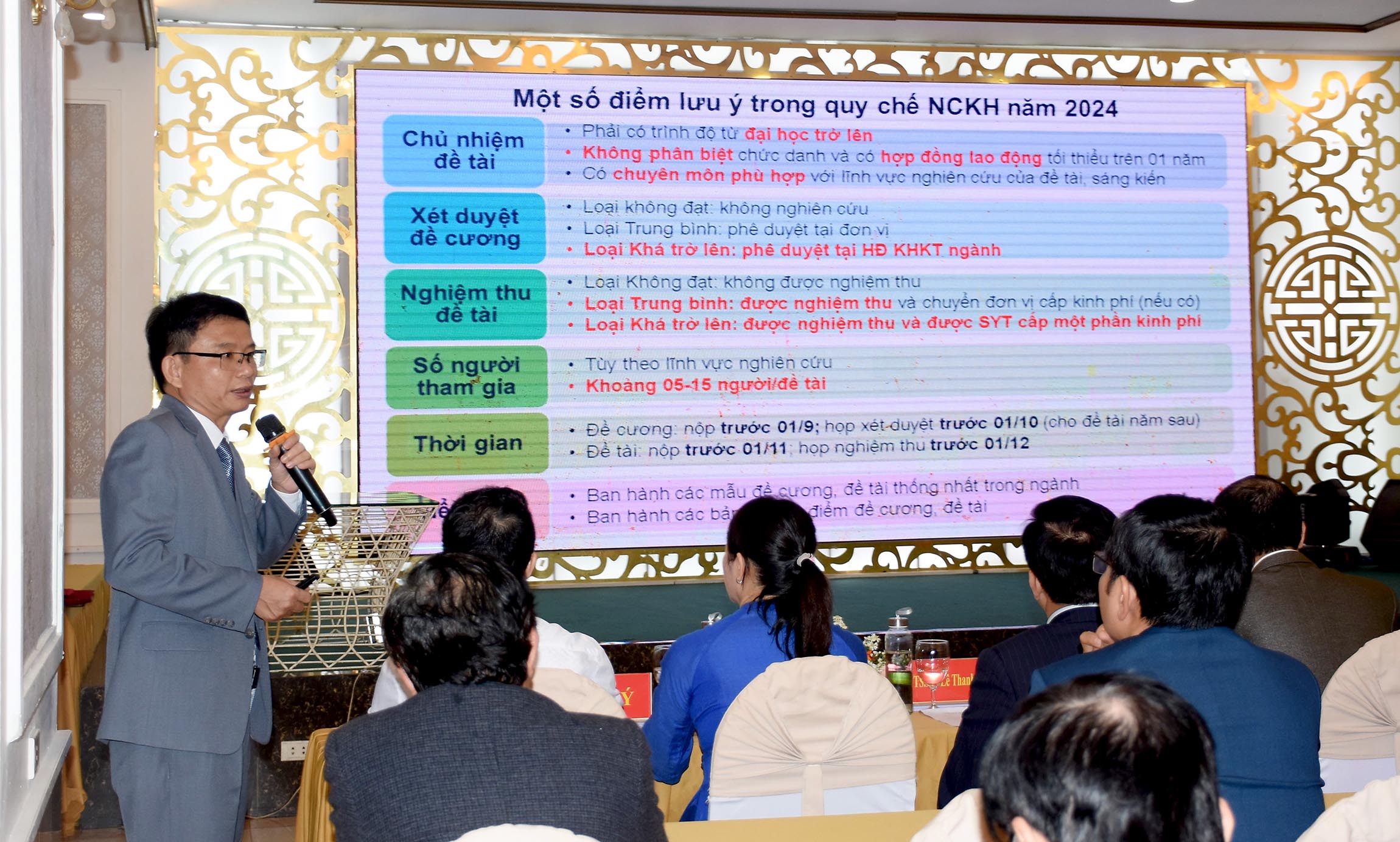 ThS.BSCKII Hoàng Trọng Quý - Phó Giám đốc sở Y tế báo cáo đánh giá công tác NCKH Ngành Y tế giai đoạn 2019 - 2024. Dịp này Sở Y tế cũng đã phát hành nội bộ Tập san Nghiên cứu khoa học Sở Y tế năm 2024 có 63 đề tài được đánh giá có chất lượng tốt, tính ứng dụng cao.