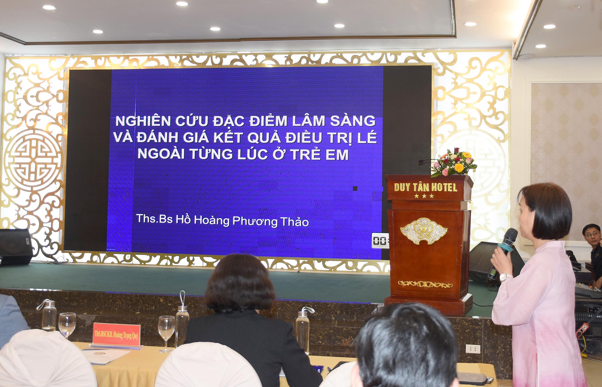 Chủ tọa Phiên chuyên đề điều trị nghe, đánh giá và nhận xét các báo cáo viên của Phòng BVSKCB, BV Mắt- Huế, BV Y học cổ truyền và BV Da liễu Huế trình bày các nghiên cứu trong lĩnh vực điều trị.