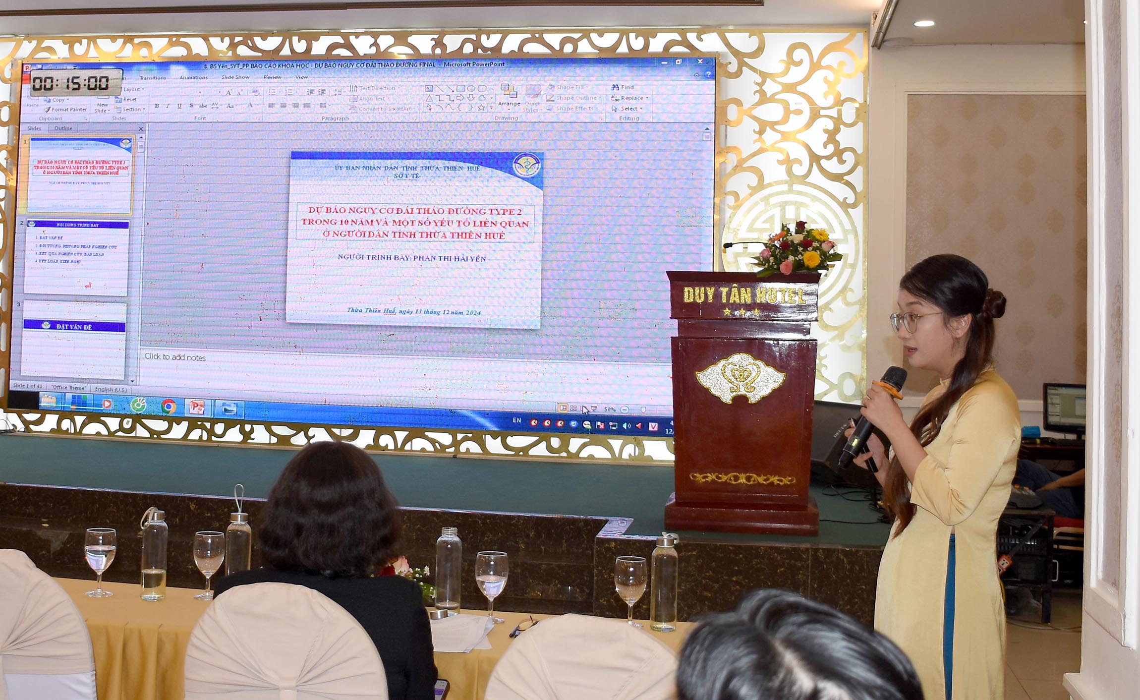 Chủ tọa Phiên chuyên đề Y tế dự phòng nghe, đánh giá và nhận xét các đề tài của Văn phòng Sở Y tế, BV Răng Hàm Mặt, Trung tâm KSBT và BV Phục hồi chức năng trình bày các nghiên cứu về lĩnh vực dự phòng.