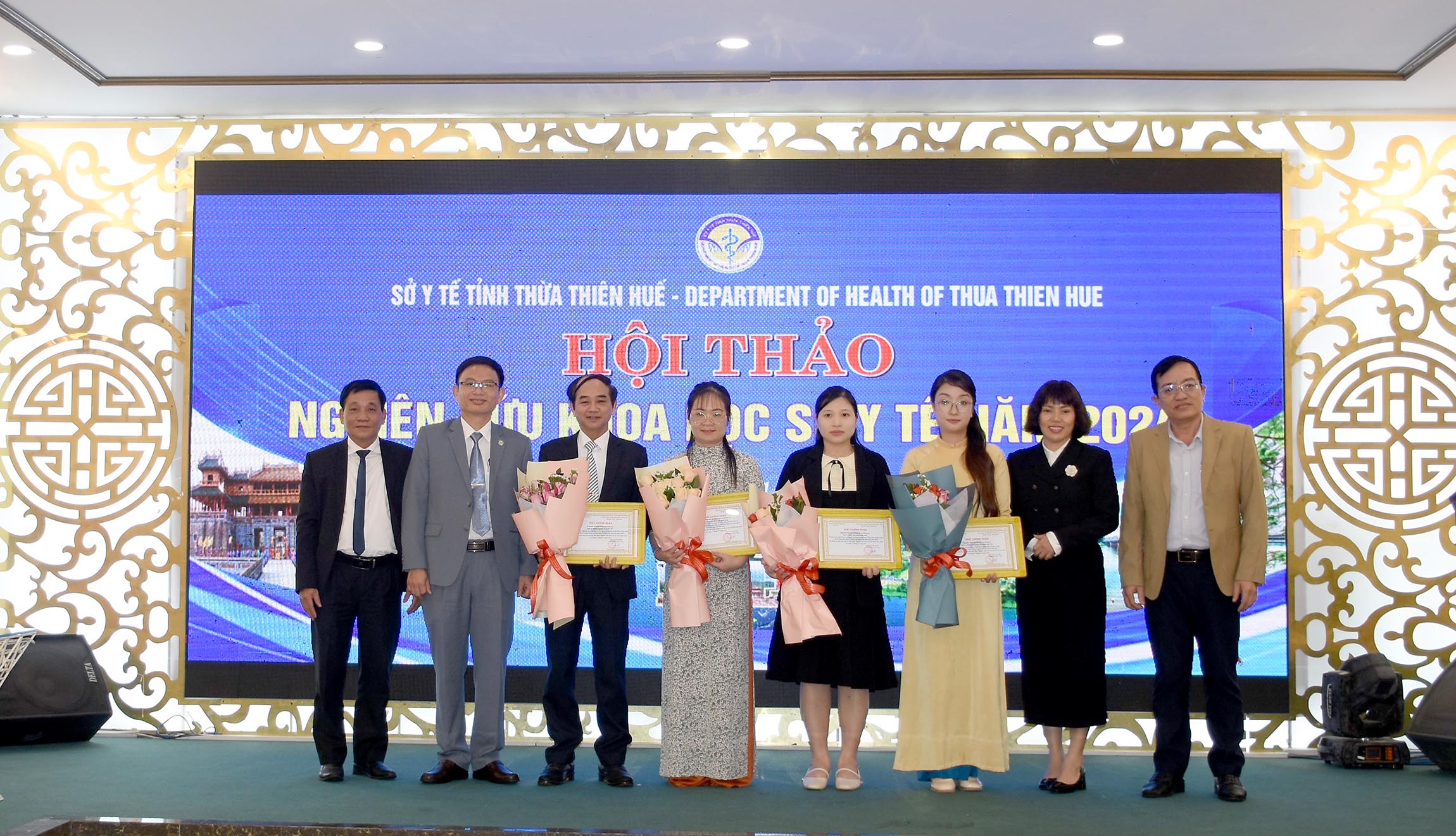 Ban Tổ chức trao Giấy chứng nhận cho các đề tài có chất lượng cao, tặng hoa chúc mừng và chụp ảnh lưu niệm.