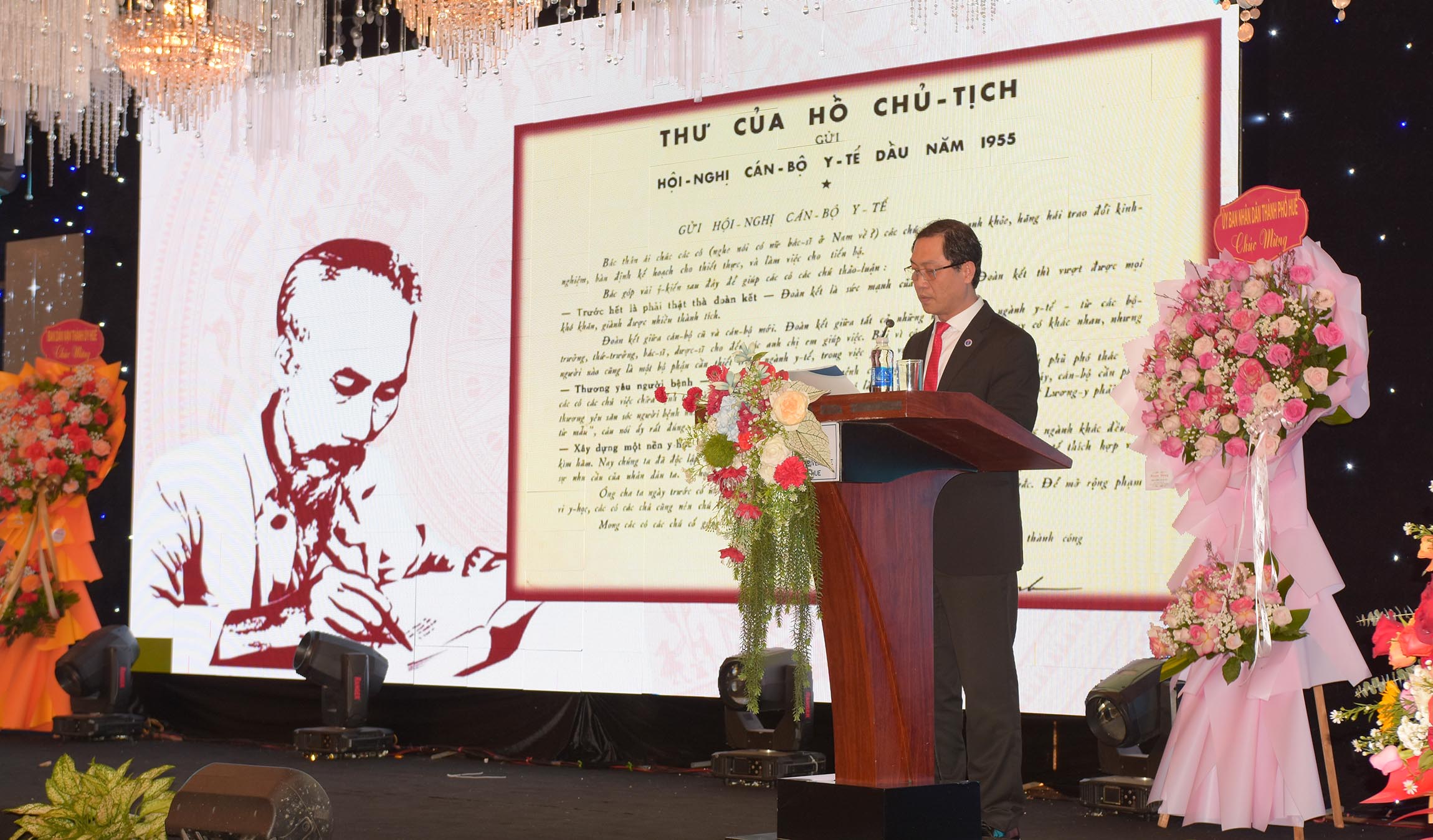 Tại buổi lễ, PGS.TS.BS Trần Kiêm Hảo, Giám đốc Sở Y tế đọc thư Bác Hồ gửi cán bộ Ngành Y tế nhân Ngày Thầy thuốc Việt Nam. Giám đốc Sở Y tế đã ghi nhận và cảm ơn những đóng góp to lớn của các thế hệ thầy thuốc thành phố Huế đã đoàn kết, khắc phục khó khăn, có nhiều đóng góp, hoàn thành tốt nhiệm vụ, mang lại thành công chung cho công tác y tế của thành phố.