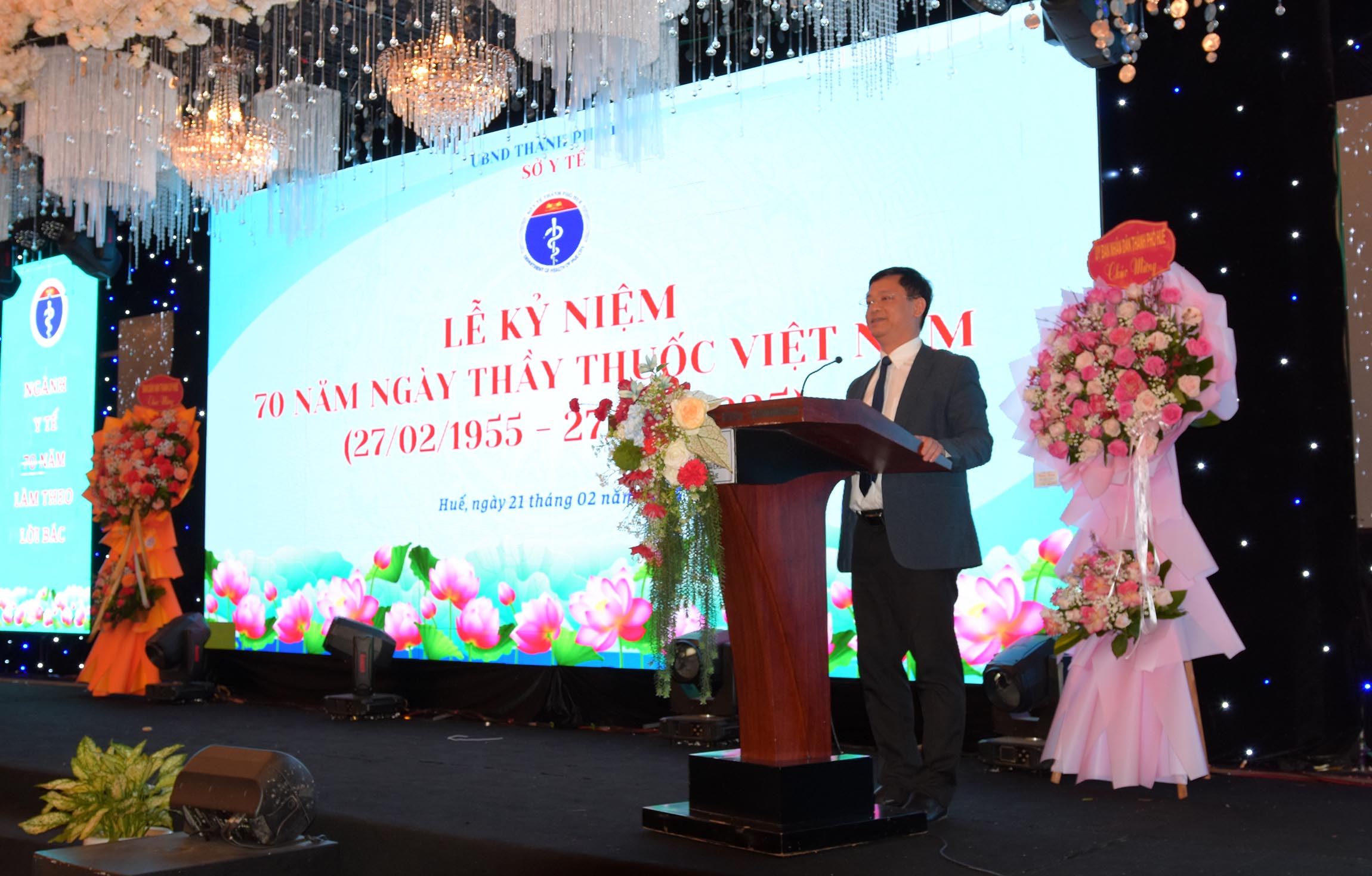 Phát biểu tại lễ kỷ niệm, Phó Chủ tịch Thường trực UBND thành phố biểu dương những thành quả mà ngành Y tế thành phố đã đạt được trong thời gian qua. Mỗi bước phát triển của ngành Y tế là thành quả của sự sáng tạo, lòng nhân ái và trách nhiệm của đội ngũ y bác sĩ, nhân viên y tế. Trong suốt chặng đường dài ấy, không thiếu những khoảnh khắc xúc động khi thấy những đôi bàn tay kiên cường luôn sẵn sàng cứu chữa, không quản ngại khó khăn, nguy hiểm, đặc biệt trong những tình huống khẩn cấp hay đại dịch. Nhân kỷ niệm ngày Thầy thuốc Việt Nam, Phó Chủ tịch UBND thành phố Huế đã gửi lời tri ân, lời chúc mừng tốt đẹp nhất đến đội ngũ các y bác sĩ và nhân viên toàn ngành y tế.