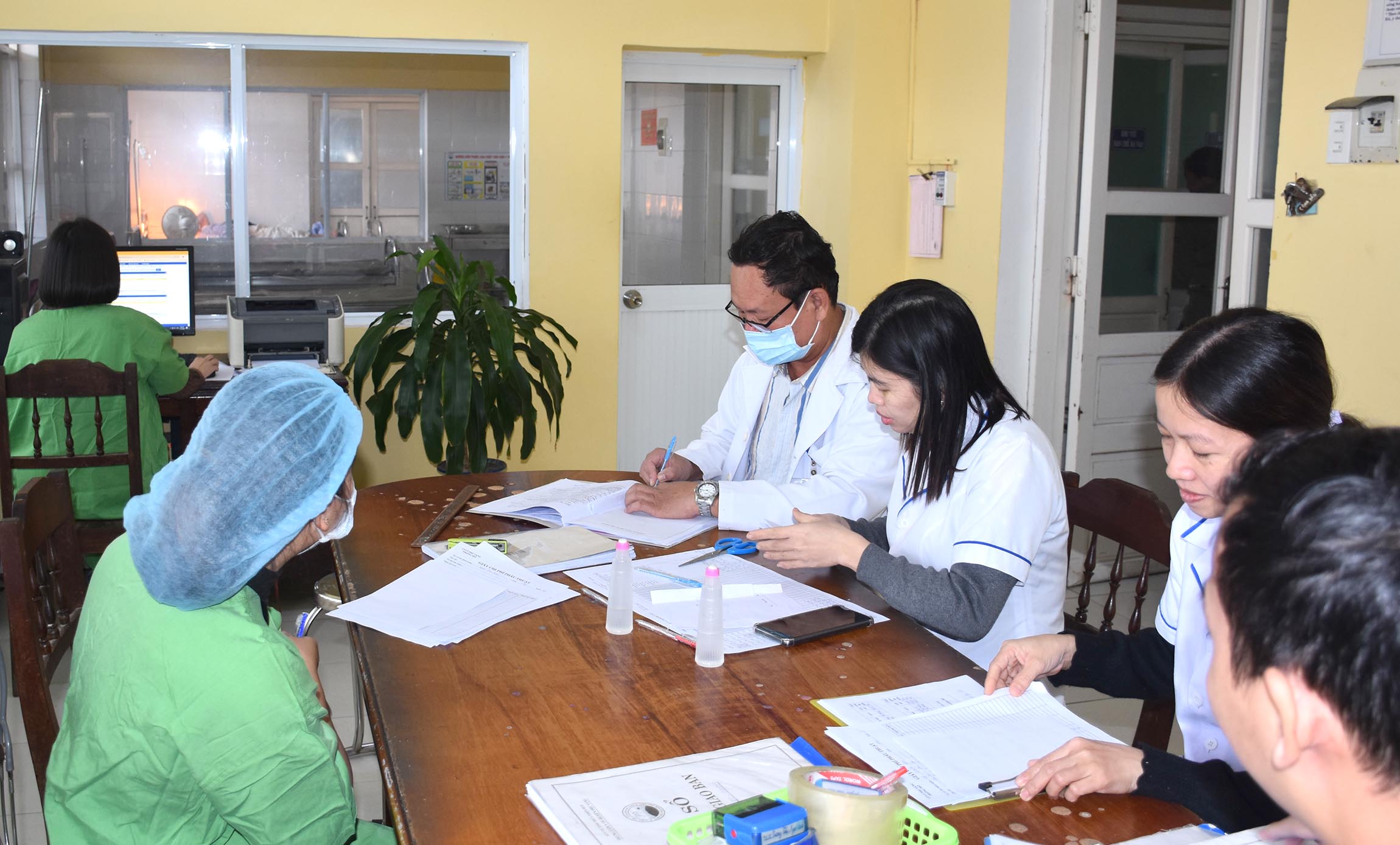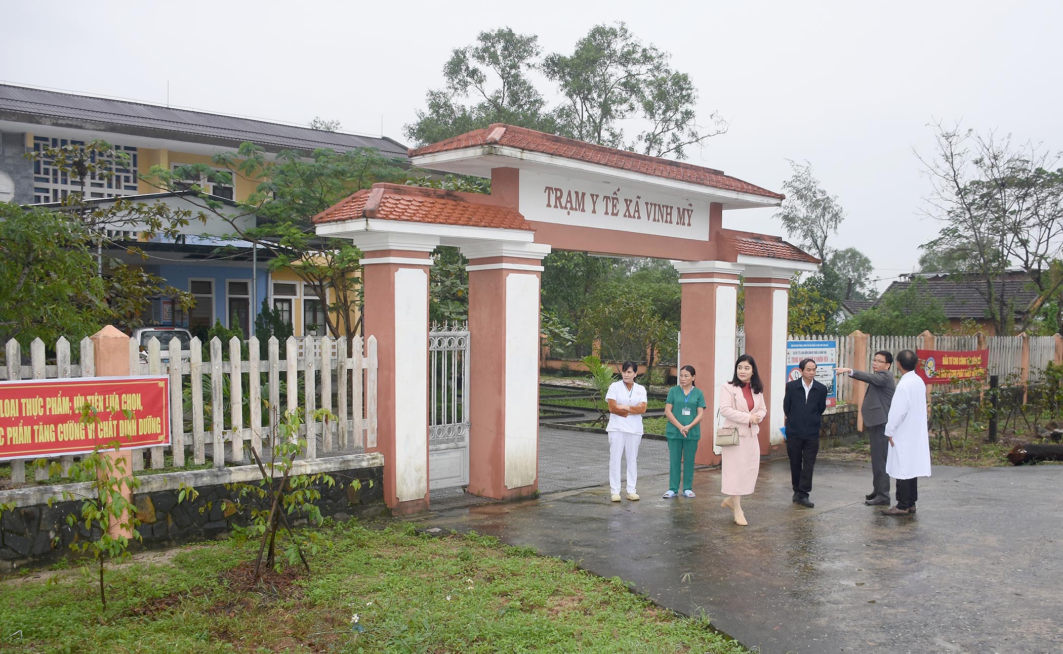 ThS. BSCKII Hoàng Trọng Quý Phó Giám đốc Sở Y tế cùng Đoàn công tác làm ciệc tai trạm Y tế xã Vinh Mỹ - huyện Phú Lộc.