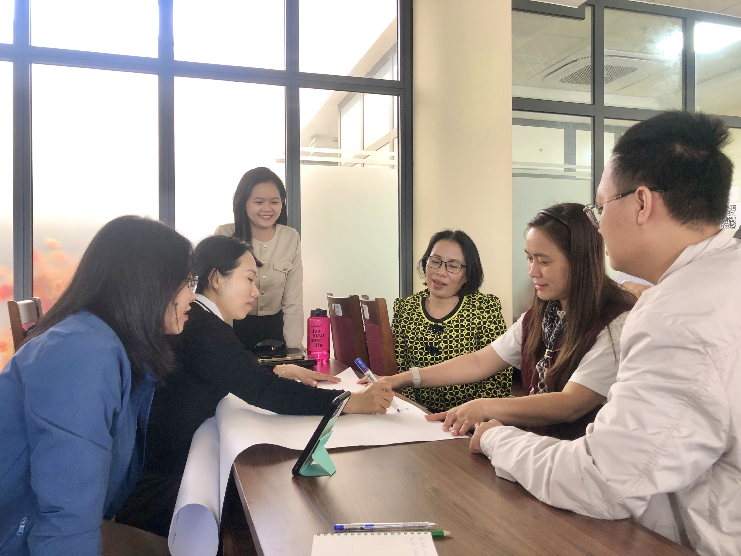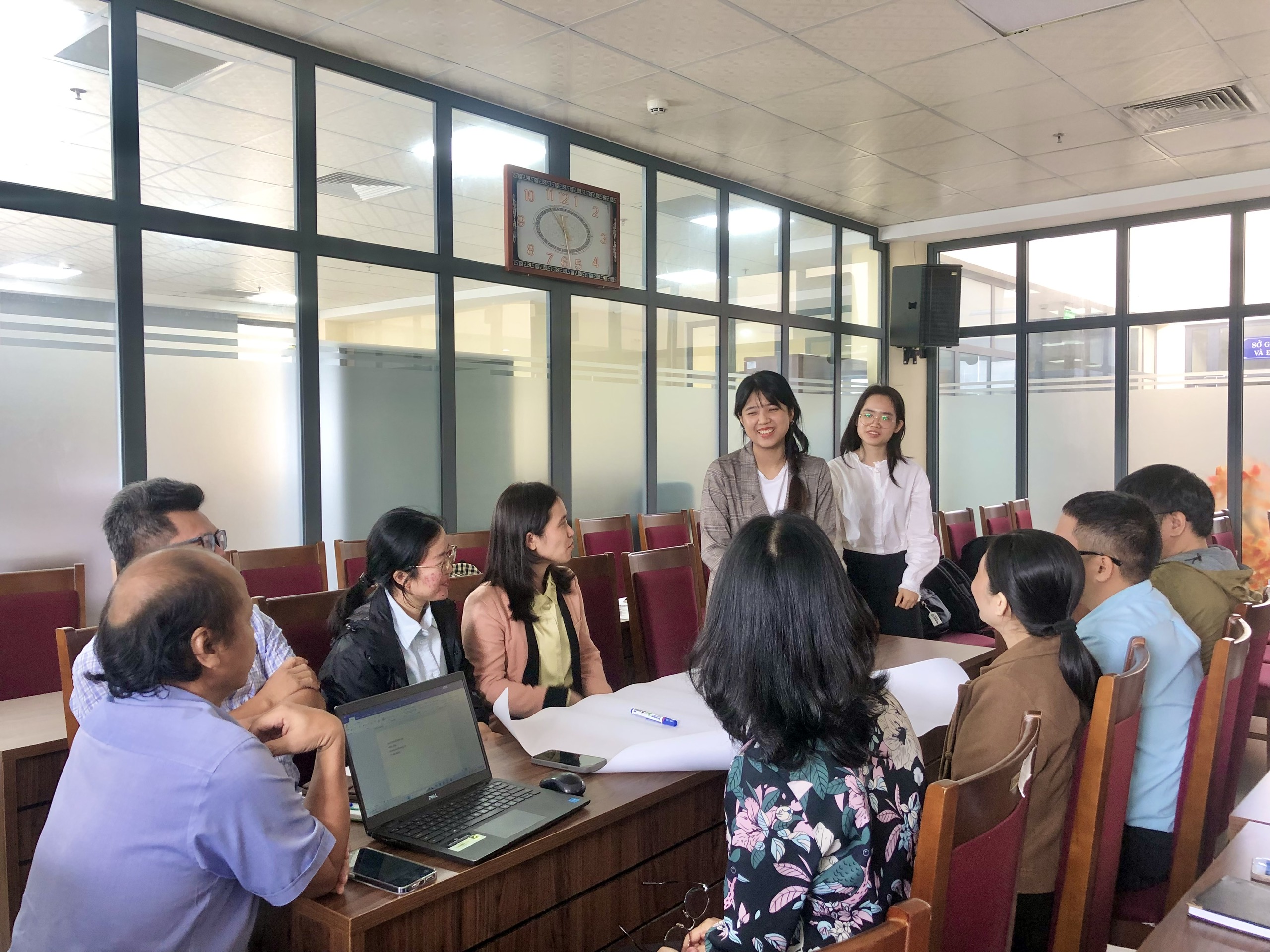 Học viên lớp tập huấn làm thảo luận nhóm dưới sự hướng dẫn của các trợ giảng