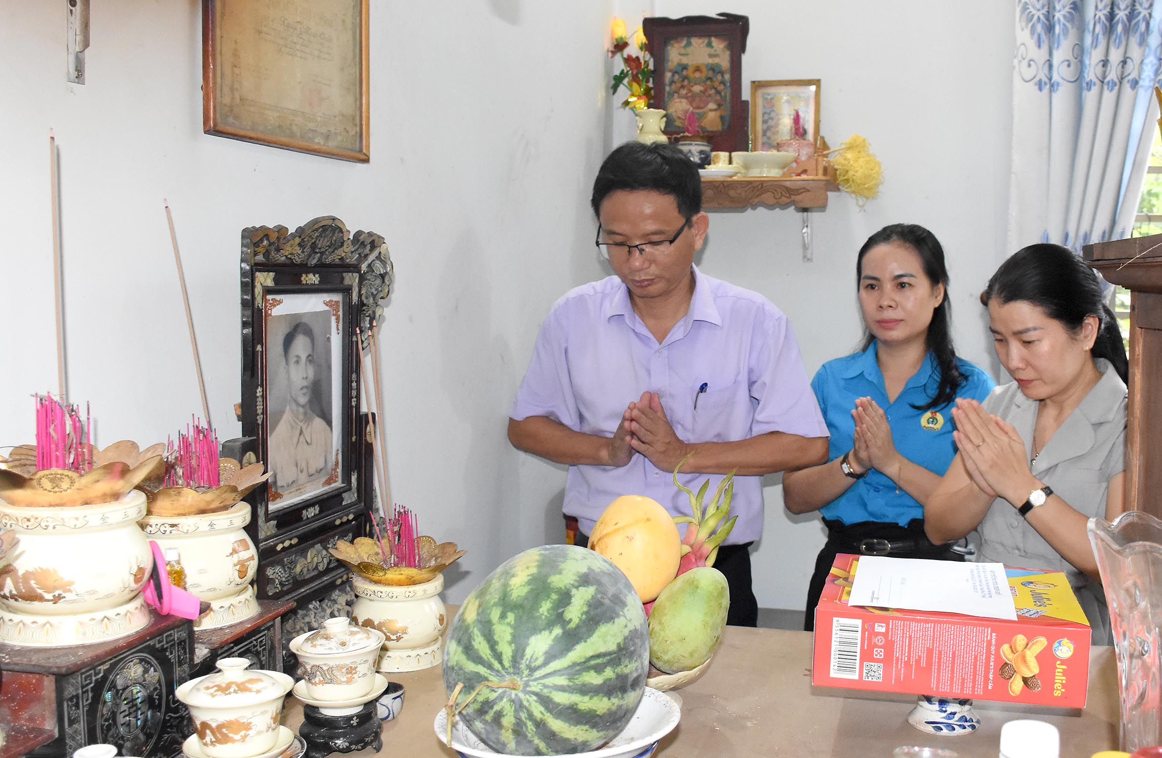 DSCKI Lê Viết Bắc - Phó BTĐU, Phó Giám đốc Sở, Chủ tịch Công đoàn Ngành cùng các thành viên thắp hương tưởng niệm tri ân BS.AHLLVTND.LS Đặng Thùy Trâm, BS.LS Dương Văn Thạnh và thăm hỏi ông Nguyễn Đô - Thương binh hạng 4/4 và ông Hồ Văn Sịa - Thương binh hạng 3/4.