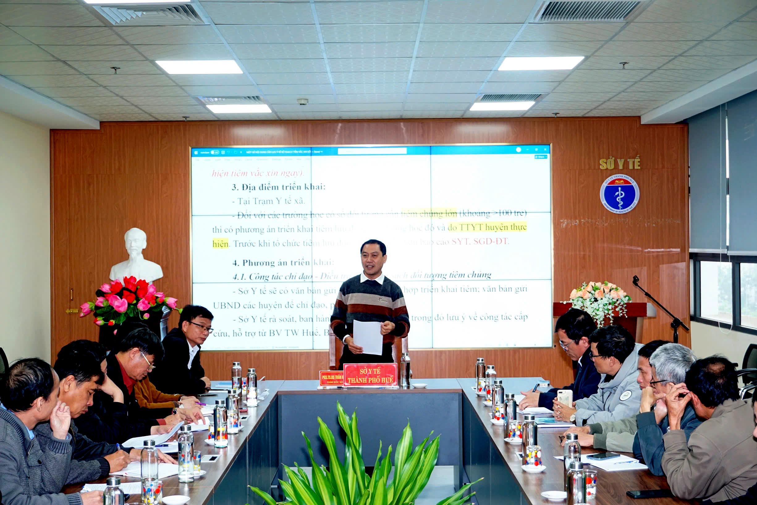 Tại hội nghị, đại diện phòng nghiệp vụ Y - Sở Y tế báo cáo tình hình bệnh sởi trên địa bàn và kế hoạch triển khai Chiến dịch tiêm chủng vắc xin phòng bệnh sởi trên địa bàn Thành phố Huế. Chiến dịch tiêm chủng vắc xin sởi được triển khai trên phạm vi toàn thành phố. Trong Chiến dịch, sẽ tiêm vắc xin phòng bệnh sởi cho 95% trẻ thuộc đối tượng tiêm chủng chưa được tiêm hoặc chưa được tiêm đủ mũi vắc xin chứa thành phần sởi theo quy định; đối tượng trẻ từ đủ 6 tháng đến dưới 9 tháng tuổi chưa tiêm vắc xin chứa thành phần sởi; trẻ từ đủ 1 đến 10 tuổi trên địa bàn chưa được tiêm đủ mũi vắc xin chứa thành phần sởi theo quy định.