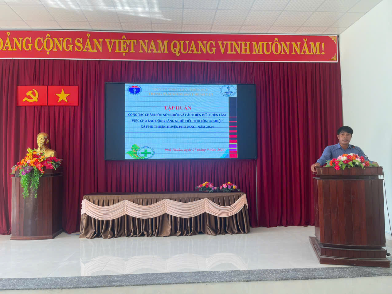 Ngày 27 tháng 9 năm 2024, Trung tâm Kiểm soát Bệnh tật tỉnh Thừa Thiên Huế phối hợp với Uỷ ban nhân xã Phú Thuận tổ chức tập huấn cải thiện điều kiện làm việc cho lao động tiểu thủ công tại làng mắn An Dương.