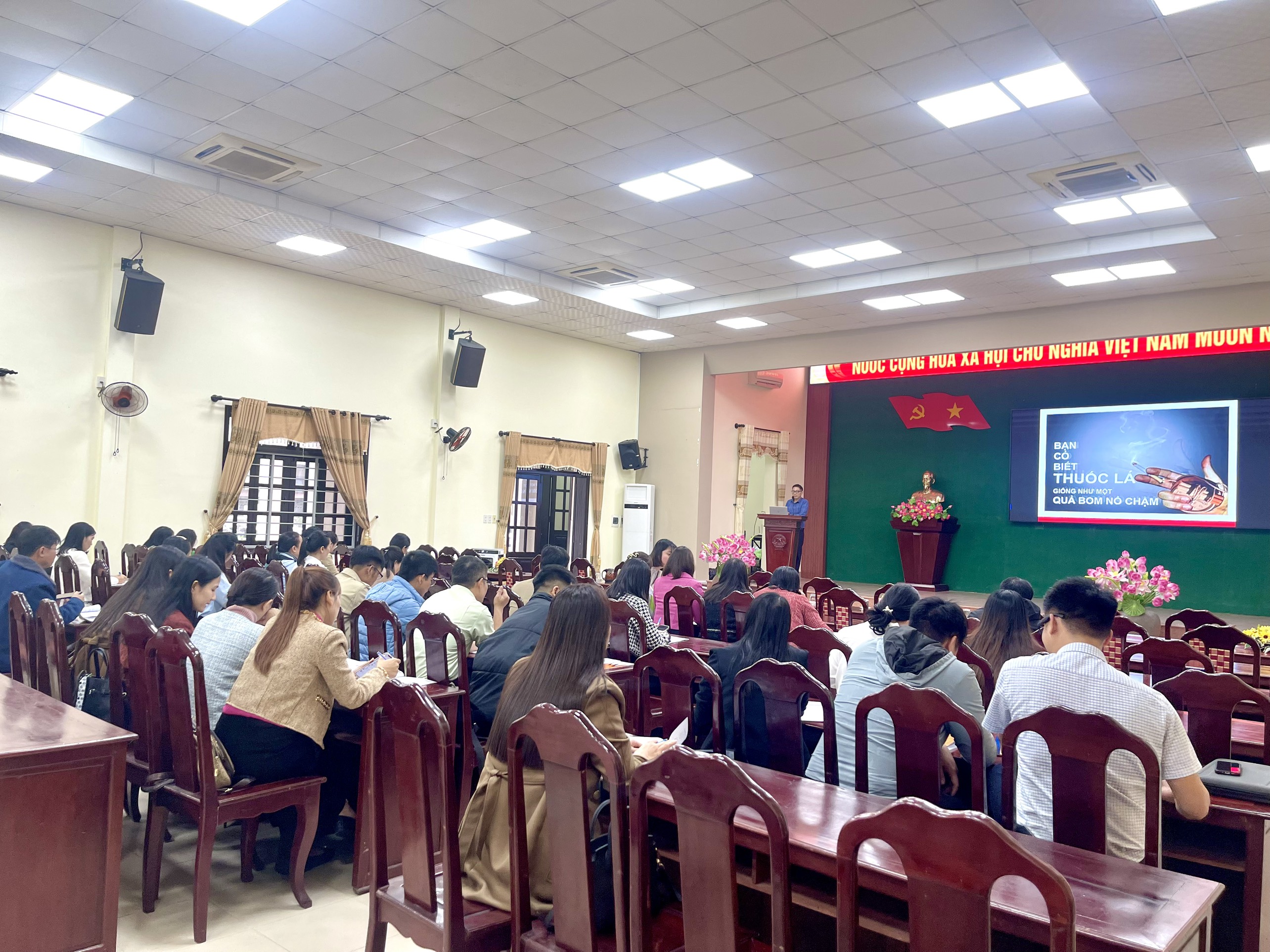 Thực hiện kế hoạch chương trình phòng, chống tác hại thuốc lá năm 2025 của thành phố Huế. Sở Y tế - Cơ quan thường trực Ban Chỉ đạo phòng, chống tác hại thuốc lá thành phố đã giao cho Trung tâm Kiểm soát bệnh tật làm đầu mối triển khai hoạt động phòng, chống tác hại thuốc lá. Ngày 04/12/2025, Trung tâm Kiểm soát bệnh tật tổ chức tập huấn cho 40 giáo viên về Phòng, chống tác hại thuốc lá để giảng dạy tại các trường Trường Mầm non, Tiểu học, THCS, THPT phường Hương Thủy, Thanh Thủy, Phú Bài.