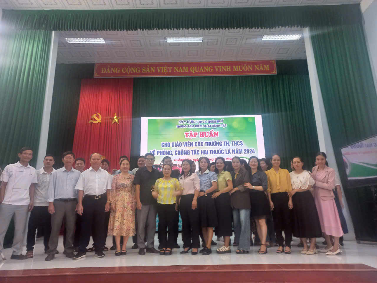 Ngày 15/11/2024, Sở Y tế - Cơ quan thường trực Ban Chỉ đạo phòng, chống tác hại thuốc lá tỉnh Thừa Thiên Huế đã giao cho Trung tâm Kiểm soát bệnh tật tỉnh làm đầu mối triển khai hoạt động phòng, chống tác hại thuốc lá tổ chức tập huấn cho 40 giáo viên về Phòng, chống tác hại thuốc lá để giảng dạy tại các trường Tiểu học, THCS trực thuộc Phòng Giáo dục và Đào tạo huyện Quảng Điền.