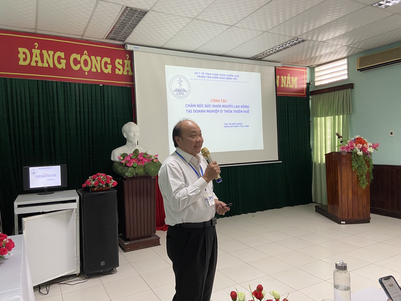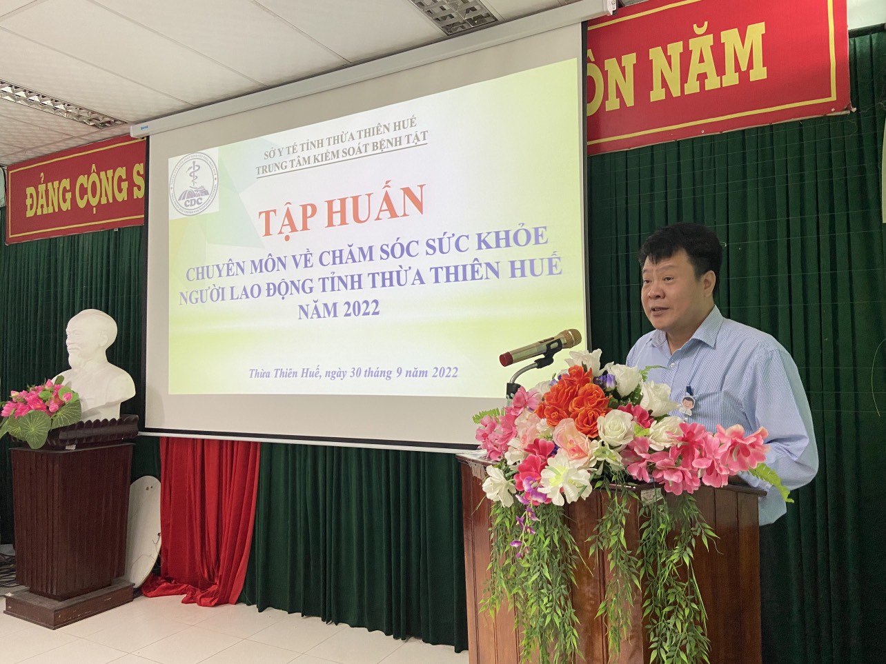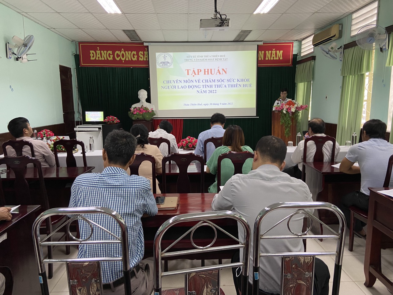 Thực hiện “Chương trình chăm sóc và nâng cao sức khỏe người lao động, phòng chống bệnh nghề nghiệp giai đoạn 2020 - 2030”, sáng ngày 30.9.2022 Trung tâm Kiếm soát bệnh tật tỉnh (CDC) đã tổ Tập huấn chuyên môn về công tác chăm sóc sức khỏe người lao động (CSSKNLĐ) trên địa bàn tỉnh năm 2022. Nội dung tập huấn liên quan đến công tác Quan trắc môi trường lao động tại tỉnh Thừa Thiên Huế như; đánh giá yếu tố tiếp xúc nghề nghiệp trong Quan trắc môi trường lao động , tâm sinh lý lao động và Ecgonomy trong môi trường lao động và Nghị định Số 12/2022/NĐ-CP Quy định xử phạt vi phạm hành chính về vệ sinh lao động và Quan trắc môi trường lao động, Nghị định số 117/2020/NĐ-CP xử phạt vi phạm hành chính trong lĩnh vực y tế. Tham dự lớp tập huấn có Ths.Bs Lương Văn Định - Chuyên viên Phòng nghiệp vụ y, Sở Y tế.