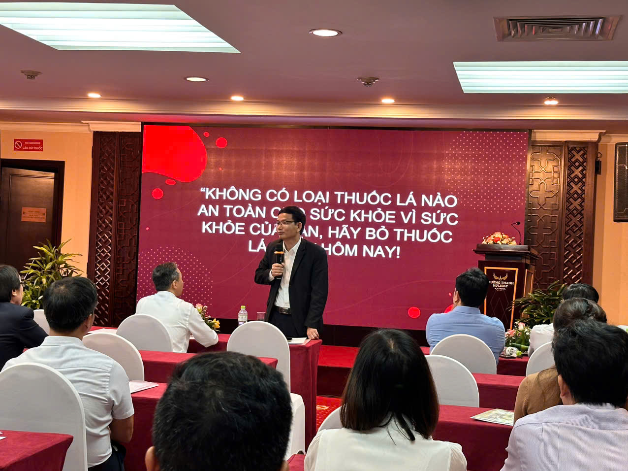 Phát biểu tại lớp tập huấn, ThS.BSCKII. Hoàng Trọng Quý - Phó Giám đốc Sở Y tế tỉnh Thừa Thiên Huế cho rằng việc Phòng, chống tác hại thuốc lá, thuốc lá điện tử đang là một vấn đề công cộng được các cấp các ngành rất quan tâm. Việc giảm tỷ lệ hút thuốc lá là nhiệm vụ không chỉ riêng ngành Y tế mà là trách nhiệm của toàn xã hội. Tại tỉnh Thừa Thiên Huế, qua nghiên cứu đánh giá tình hình sử dụng thuốc lá tại tỉnh Thừa Thiên Huế năm 2022 cho thấy: tỷ lệ hút thuốc lá ở nam giới khoảng 45%, trên 90% người dân biết tác hại thuốc lá và thuốc lá thụ động, 78,2% người dân có nghe Luật Phòng, chống tác hại thuốc lá. 59,4% đối tượng nghiên cứu ủng hộ việc tăng thuế. 68,3% đối tượng nghiên cứu có hiểu biết về quy định việc hút thuốc trong nhà và 68,9% đối tượng nghiên cứu có hiểu biết về quy định việc hút thuốc tại nơi làm việc. Tỷ lệ người đã và đang hút thuốc có dự đinh bỏ thuốc là 41,9%.