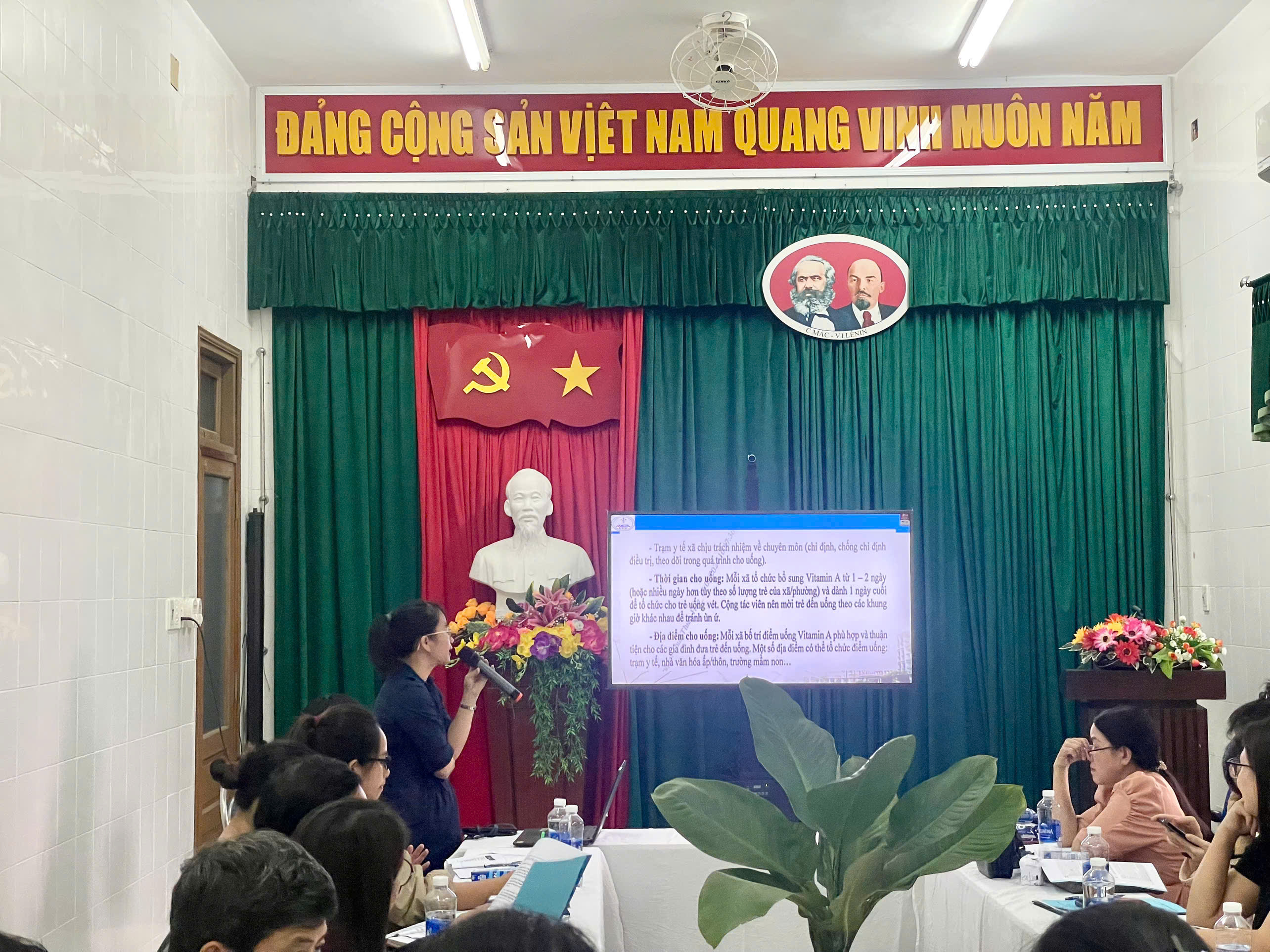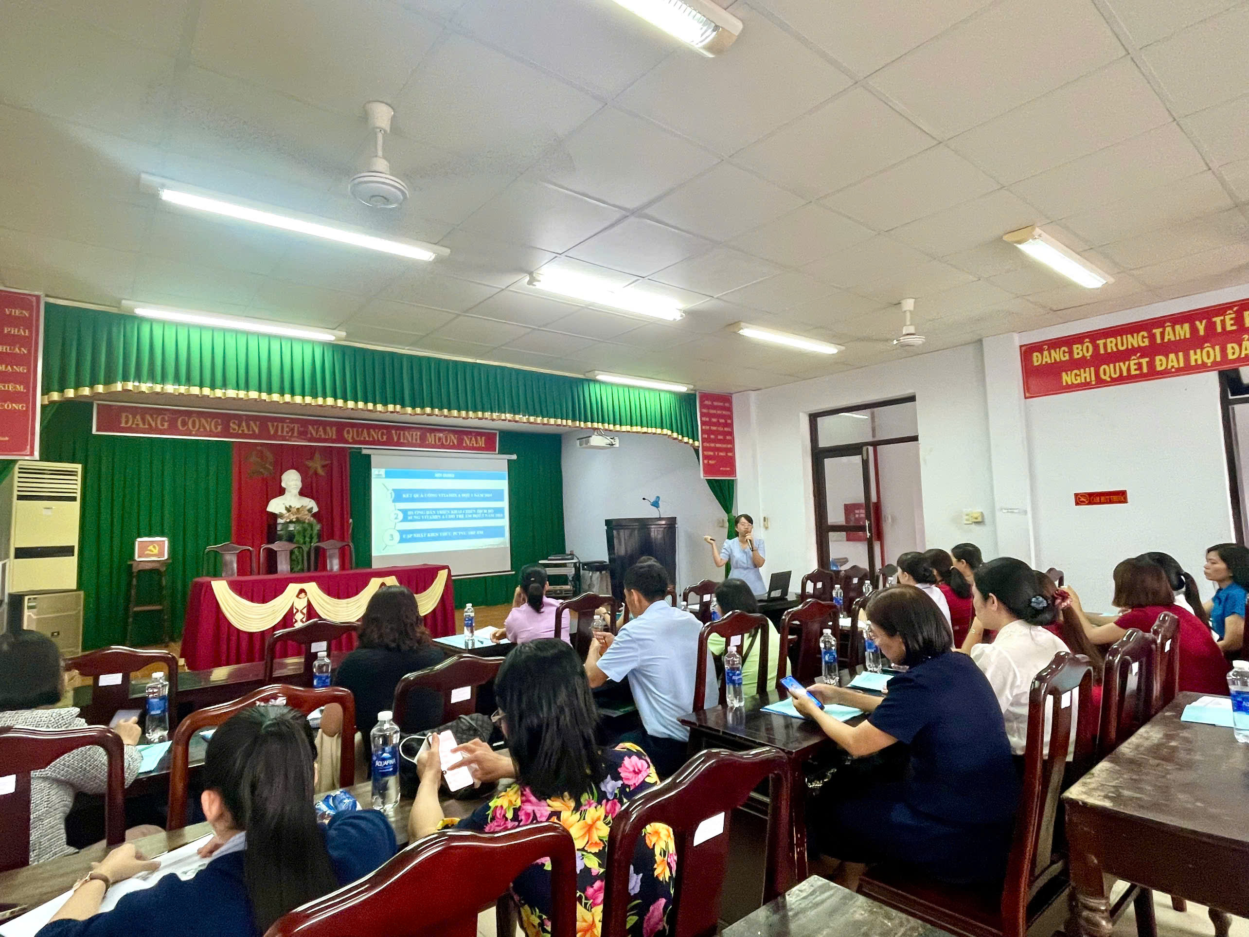 Hội trường lắng nghe các nội dung cập nhật mới nhất về hoạt động bổ sung Vitamin A liều cao