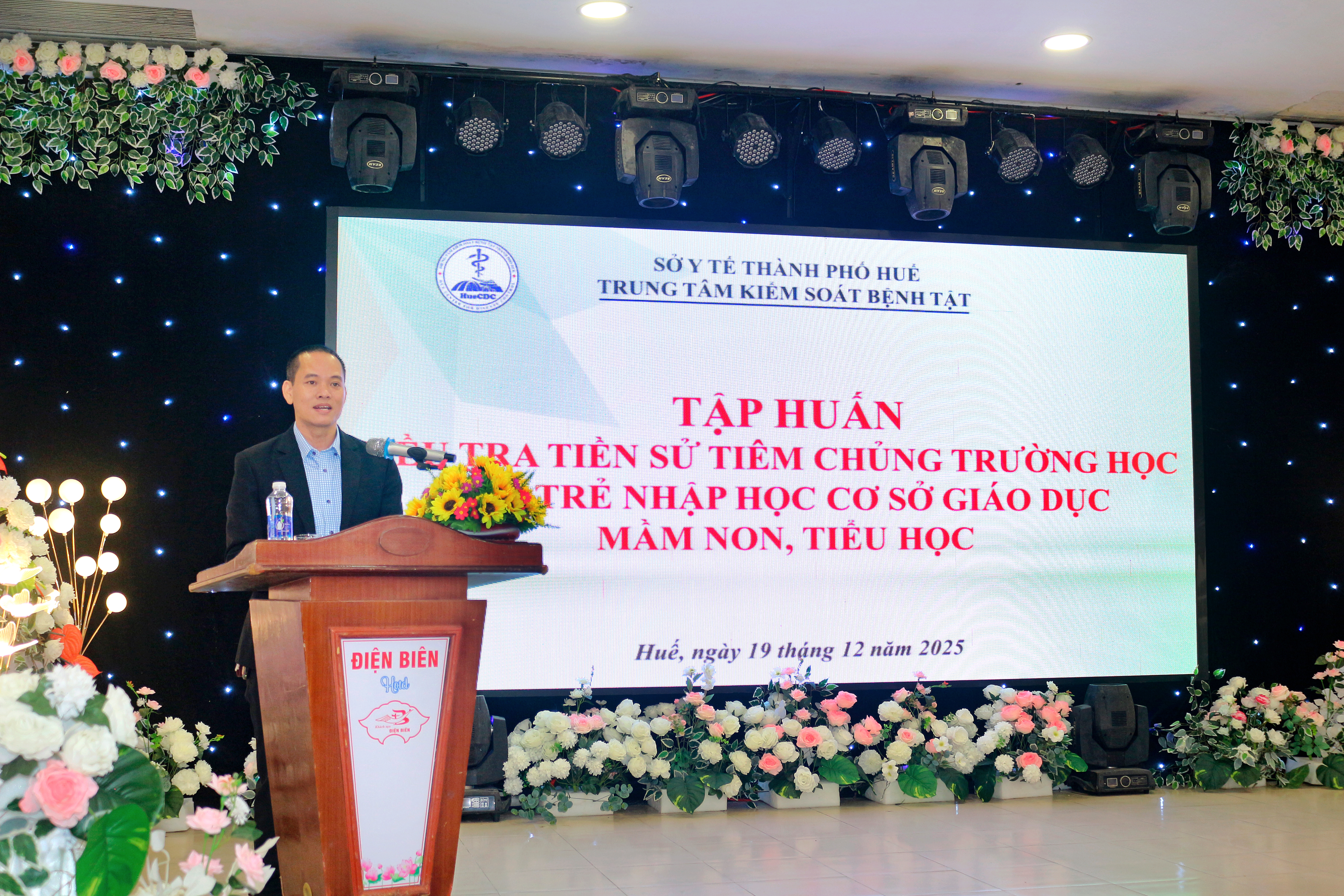 Ngày 19/12/2025, Trung tâm Kiểm soát bệnh tật (CDC) Thành phố Huế tổ chức lớp tập huấn triển khai hoạt động kiểm tra tiền sử và tiêm chủng bù liều các vắc xin trong Chương trình Tiêm chủng mở rộng (TCMR) cho trẻ nhập học tại các cơ sở giáo dục mầm non, tiểu học trên địa bàn thành phố.
