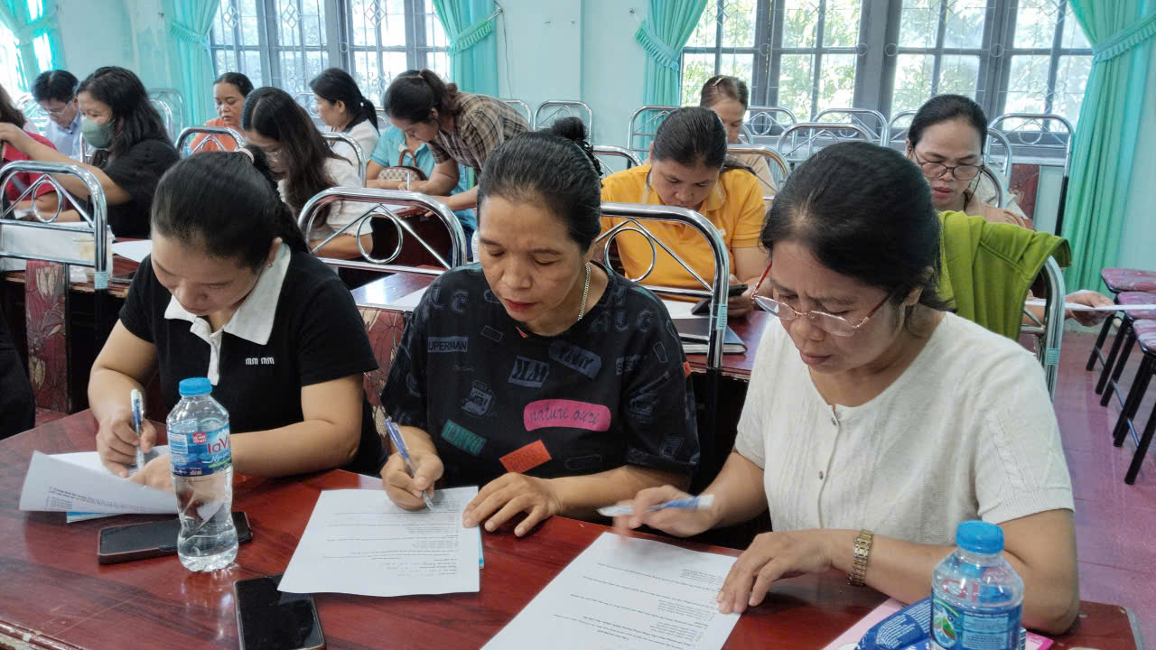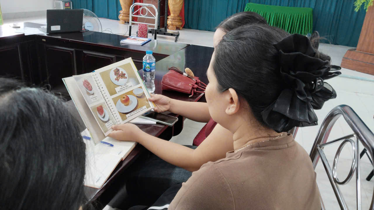 Lớp tập huấn lắng nghe nội dung về cách quy đổi thực phẩm