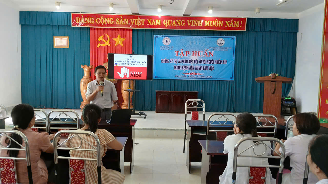 Tập huấn giảm thiểu kỳ thị và phân biệt đối xử với người nhiễm HIV trong bệnh viện và nơi làm việc tại huyện Phú Lộc.