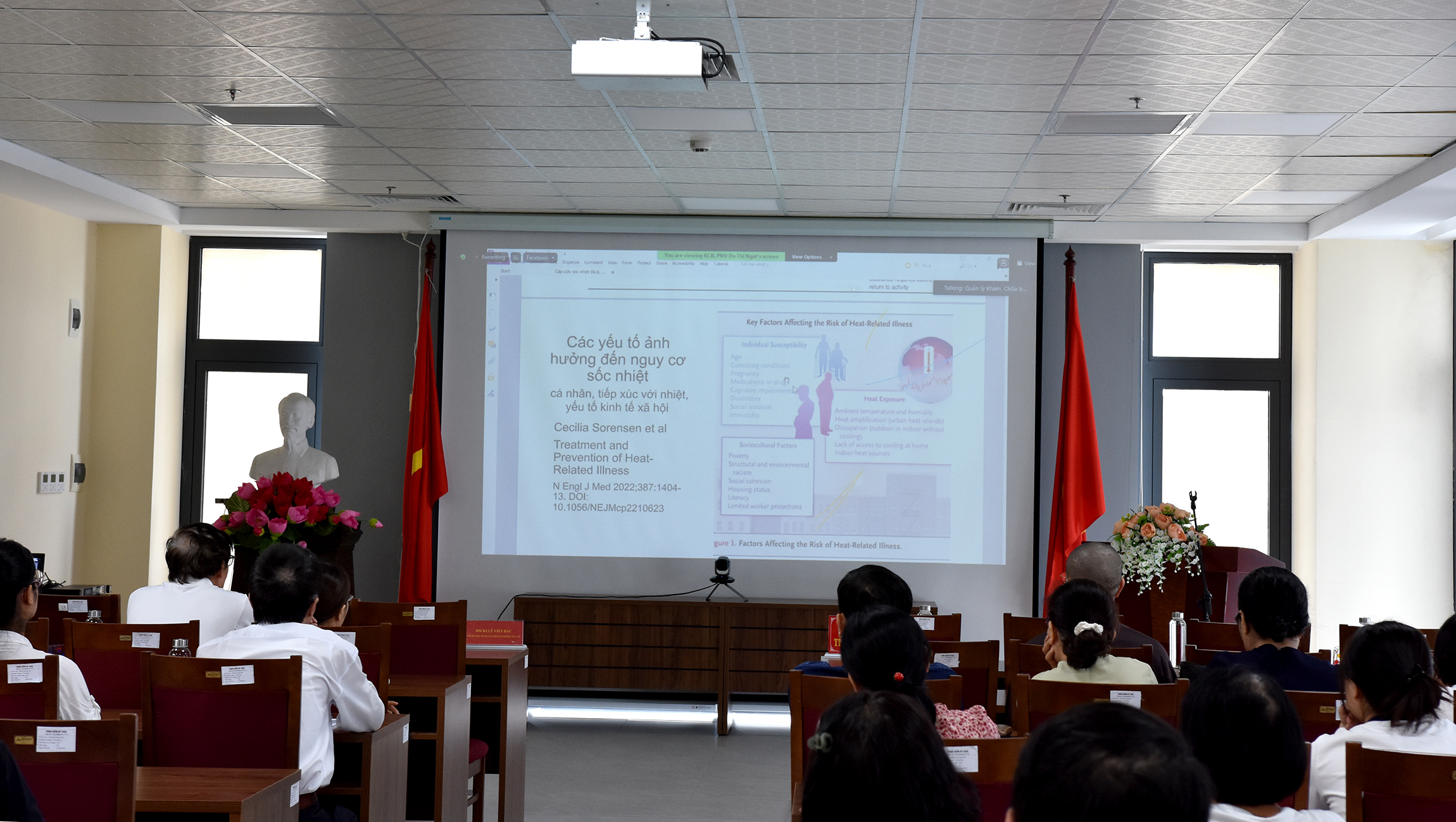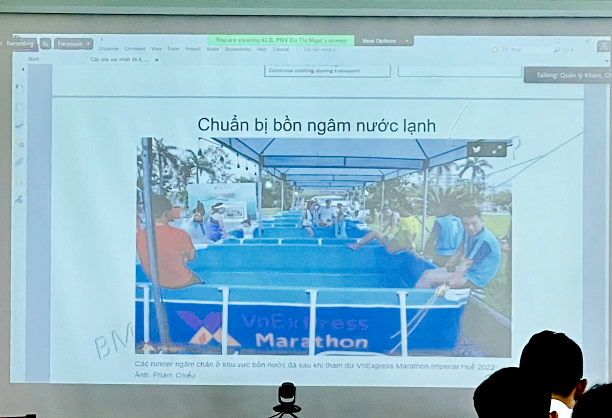Chuyên đề “Xử trí cấp cứu sốc nhiệt, các vấn đề sức khỏe gặp phải khi tham gia hoạt động ngoài trời” do GS.TS Nguyễn Gia Bình - Chủ tịch Hội Hồi sức cấp cứu và Chống độc Việt Nam trình bày tại đầu cầu Hà Nội.
