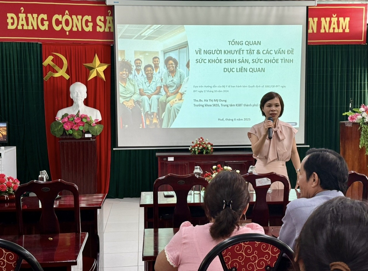 Nhằm nâng cao năng lực cho cán bộ y tế tuyến cơ sở trong lĩnh vực chăm sóc sức khỏe sinh sản. Ngày 10-11/6/2025 , Khoa Sức khỏe sinh sản – Trung tâm Kiểm soát bệnh tật thành phố Huế đã tổ chức lớp tập huấn về chuyên đề Hướng dẫn cung cấp dịch vụ chăm sóc sức khỏe sinh sản, sức khỏe tình dục cho người khuyết tật dành cho cán bộ y tế.