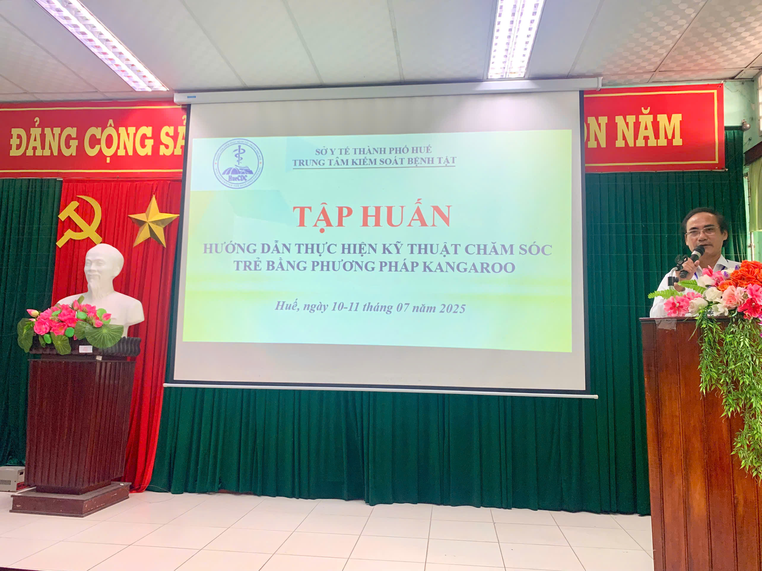 Nhằm nâng cao chất lượng chăm sóc trẻ sơ sinh, đặc biệt là trẻ sinh non, nhẹ cân tại tuyến y tế cơ sở,ngày 10-11/7/2025 tại hội trường cơ sở 10-12 nguyễn Văn Cừ, Khoa Sức khỏe sinh sản – Trung tâm Kiểm soát bệnh tật thành phố Huế đã tổ chức lớp tập huấn "Hướng dẫn kỹ thuật chăm sóc Kangaroo" cho 35 học viên là cán bộ y tế đang công tác tại các bệnh viện, trung tâm y tế phường, xã trên địa bàn.