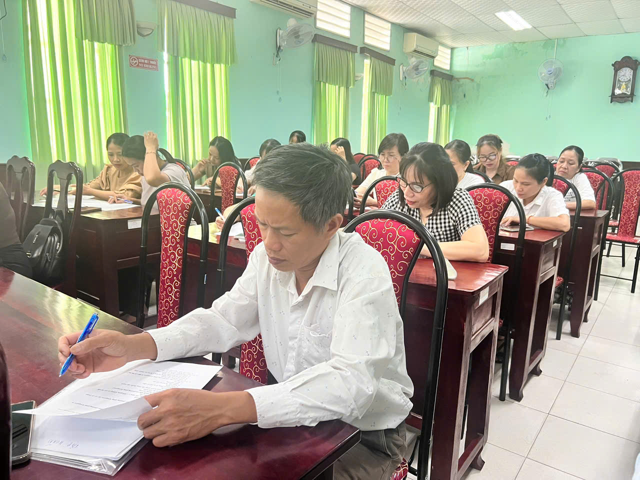 Hình ảnh: Học viên làm bài kiểm tra trước khi tập huấn