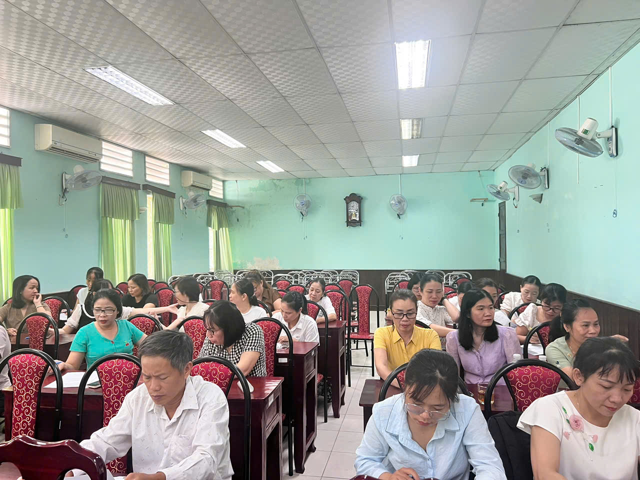 Học viên đã tích cực tham gia thảo luận nhóm, đặt câu hỏi và chia sẻ kinh nghiệm thực tế từ các cơ sở y tế. Buổi học không chỉ là truyền đạt lý thuyết mà còn là dịp để cập nhật, học hỏi lẫn nhau giữa các cán bộ y tế.