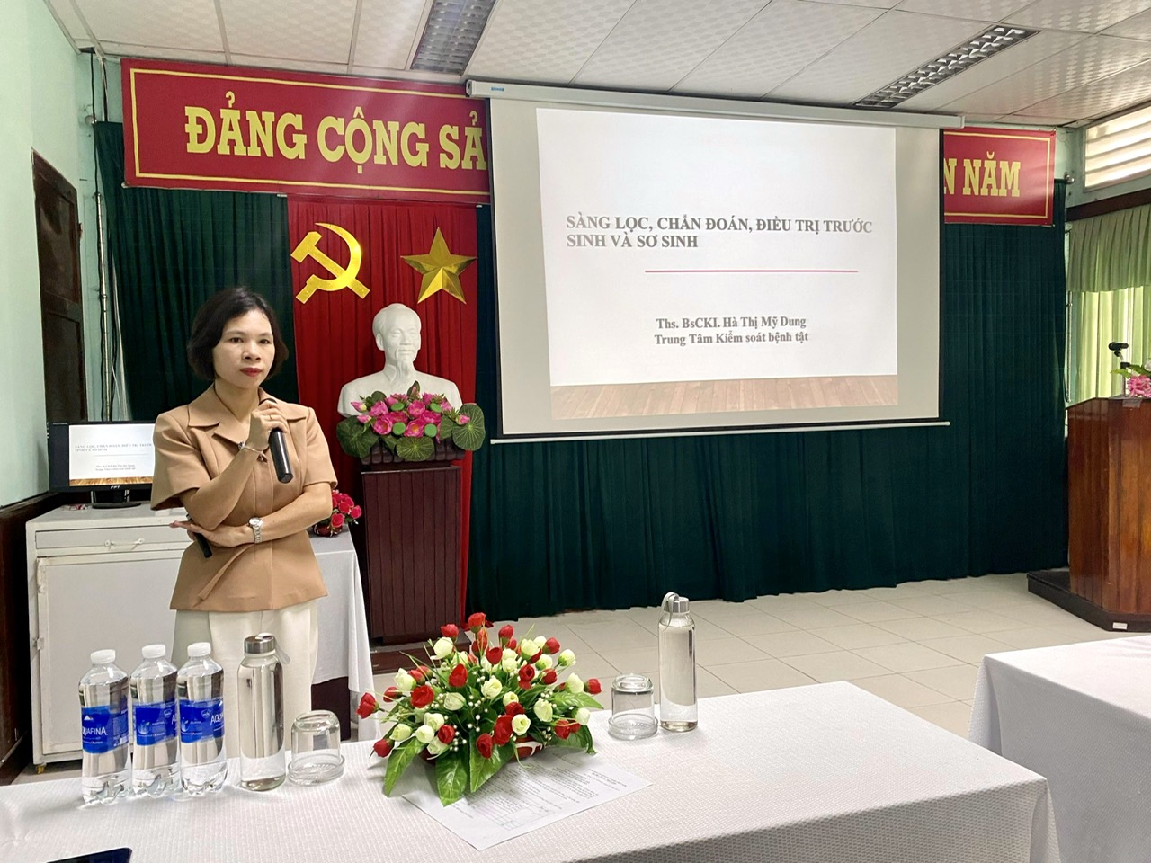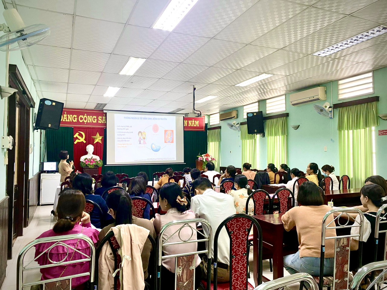 Ths. BsCKI. Hà Thị Mỹ Dung - Trưởng khoa Sức khỏe sinh sản trình bày các nội dung chuyên môn liên quan sàng lọc trước sinh, sơ sinh