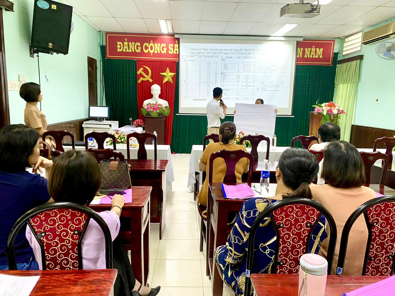 Nhằm triển khai hiệu quả Quyết định số 1807/QĐ-BYT ngày 21/4/2020 của Bộ Y tế về việc ban hành Hướng dẫn về chuyên môn kỹ thuật trong sàng lọc, chẩn đoán, điều trị trước sinh và sơ sinh, Khoa Sức khỏe sinh sản - trung tấm Kiểm soát bệnh tật đã triển khai tập huấn cho 30 cán bộ y tế tuyến tỉnh, huyện đang công tác trong lĩnh vực chăm sóc sức khỏe sinh sản nhằm đáp ứng nhu cầu tư vấn, sàng lọc, chuyển tuyến để chẩn đoán các trường hợp có nguy cơ cao mắc dị tật bẩm sinh.
