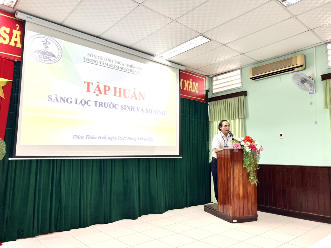 Ngày 27/9/2023, Khoa SKSS - Trung tâm kiểm soát bệnh tật tỉnh tổ chức lớp tập huấn sàng lọc trước sinh và sơ sinh cho bác sĩ sản phụ khoa, nữ hỗ sinh tuyến tỉnh, huyện trên địa bàn tỉnh Thừa Thiên Huế.Tham dự chỉ đạo lớp tập huấn có Bs CKII. Hoàng Văn Thám - PGĐ Trung tâm Kiểm soát bệnh tật; Ths. BsCKI. Hà Thị Mỹ Dung - Trưởng khoa Sức khỏe sinh sản.