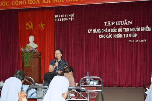 Tại lớp tập huấn, Ths.BsCKII Nguyễn Lê Tâm- Trưởng khoa PC HIV/AIDS đã có báo cáo vắn tắt về tình hình dịch tễ HIV/AIDS trên địa bàn tỉnh Thừa Thiên Huế trong 9 tháng đầu năm. Nội dung của buổi tập huấn chủ yếu tập trung chuyển tải các kỹ năng chăm sóc người nhiễm tại nhà. Mục đích vừa giúp đỡ người nhiễm mà bản thân của TNV cũng bảo vệ được chính mình. Ngoài ra, các TNV còn hỗ trợ tuân thủ điều trị cũng như các vấn đề về tâm lý- xã hội có liên quan.