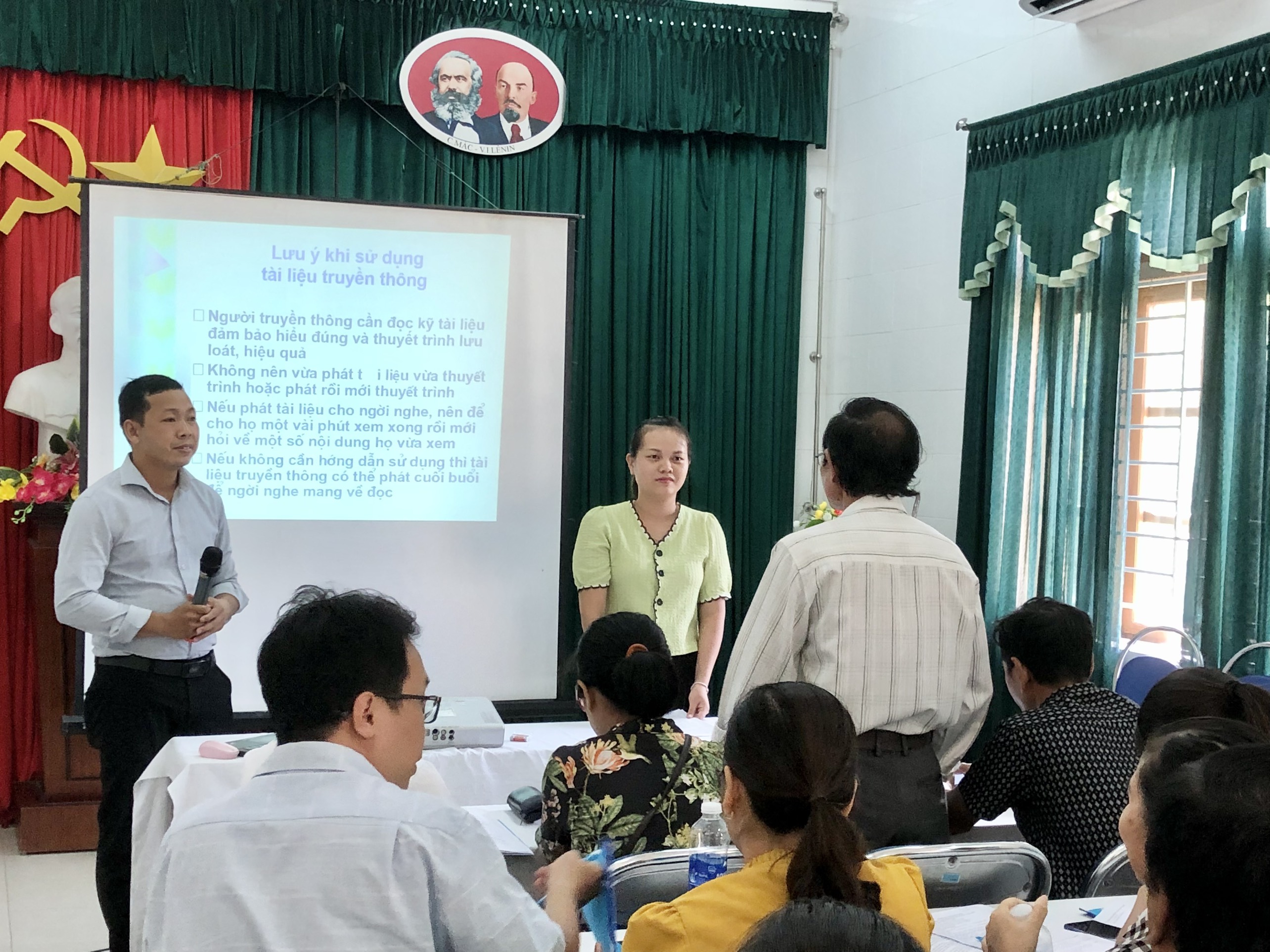 Tại lớp tập huấn, học viên được ôn lại các nội dung lý thuyết như: thông tin, truyền thông, giáo dục sức khỏe, nâng cao sức khỏe, các nguyên tắc truyền thông, phương tiện và phương pháp truyền thông giáo dục sức khỏe. Bên cạnh đó, học viên được thực hành các Kỹ năng TTGDSK như: Kỹ năng thuyết trình, Kỹ năng thảo luận nhóm, thăm hộ gia đình. Thực hành truyền thông thay đổi hành vi…