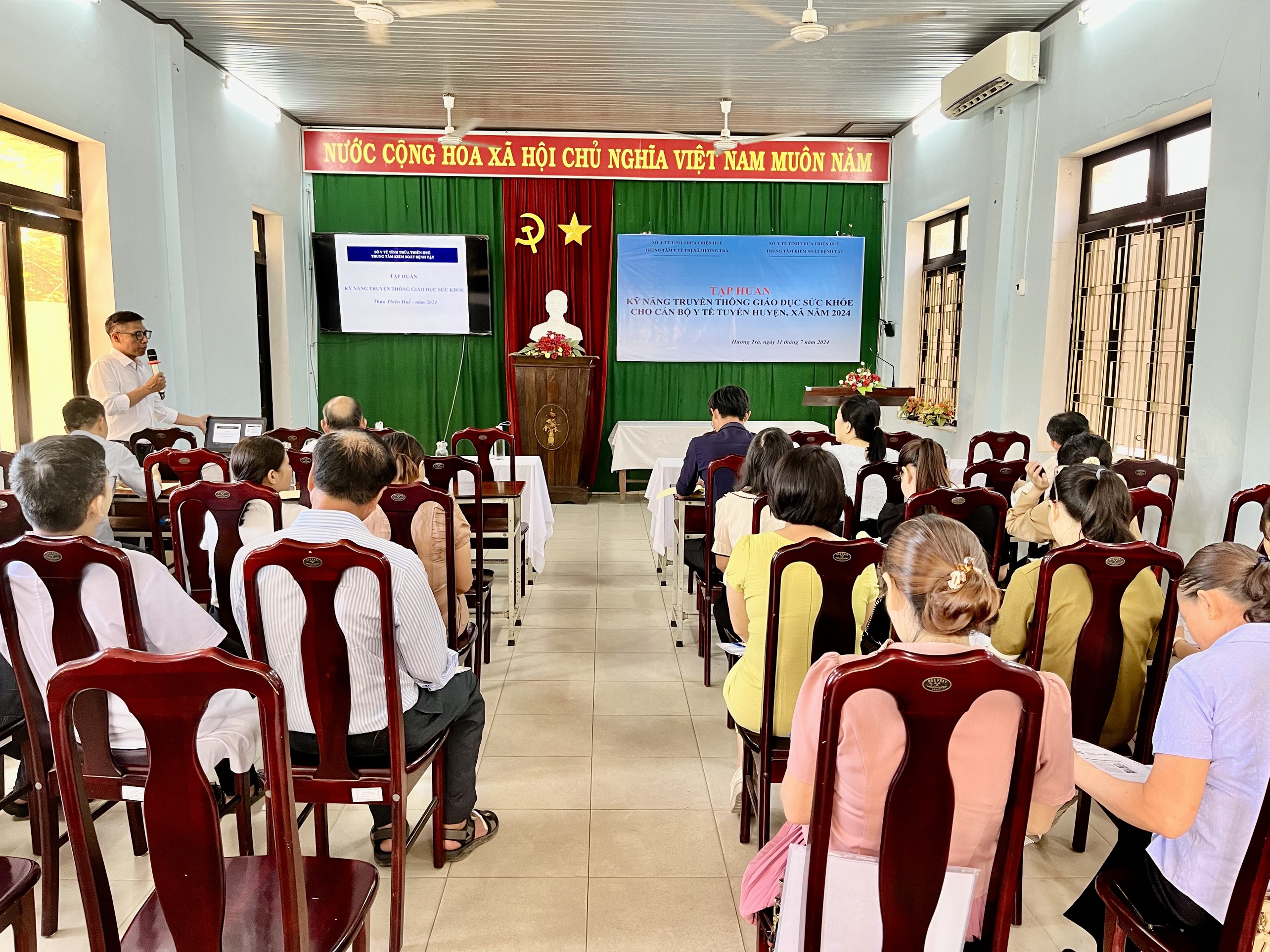 Tập huấn kỹ năng truyền thông giáo dục sức khỏe năm 2024 cho cán bộ y tế thị xã Hương Trà.