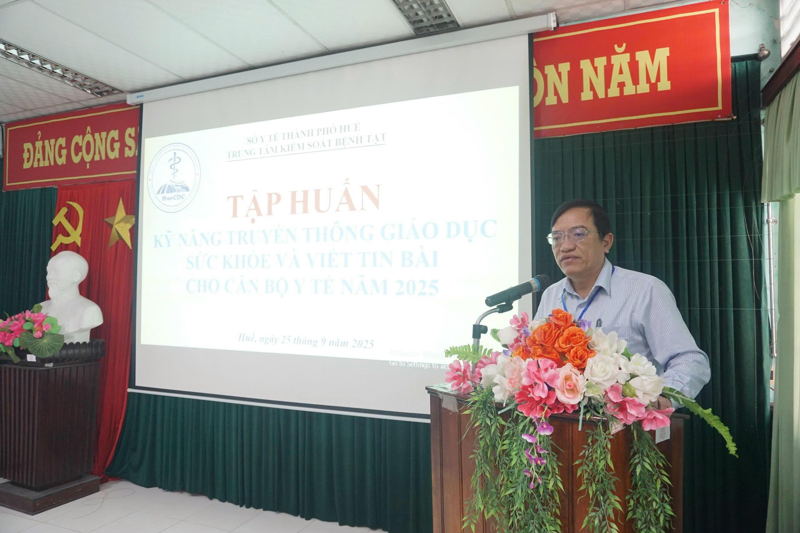 Sáng ngày 25/9/2025, Trung tâm Kiểm soát bệnh thành phố Huế tổ chức lớp tập huấn kỹ năng truyền thông giáo dục sức khỏe, viết tin bài cho cán bộ y tế các khoa, phòng của các đơn vị trực thuộc Sở Y tế. Tham dự chỉ đạo lớp tập huấn có ThS.BSCKII. Nguyễn Lê Tâm - Phó Giám đốc phụ trách Trung tâm Kiểm soát bệnh tật và 42 học viên là cán bộ phụ trách truyền thông, viết tin bài đến từ các đơn vị y tế trực thuộc của ngành Y tế thành phố Huế.