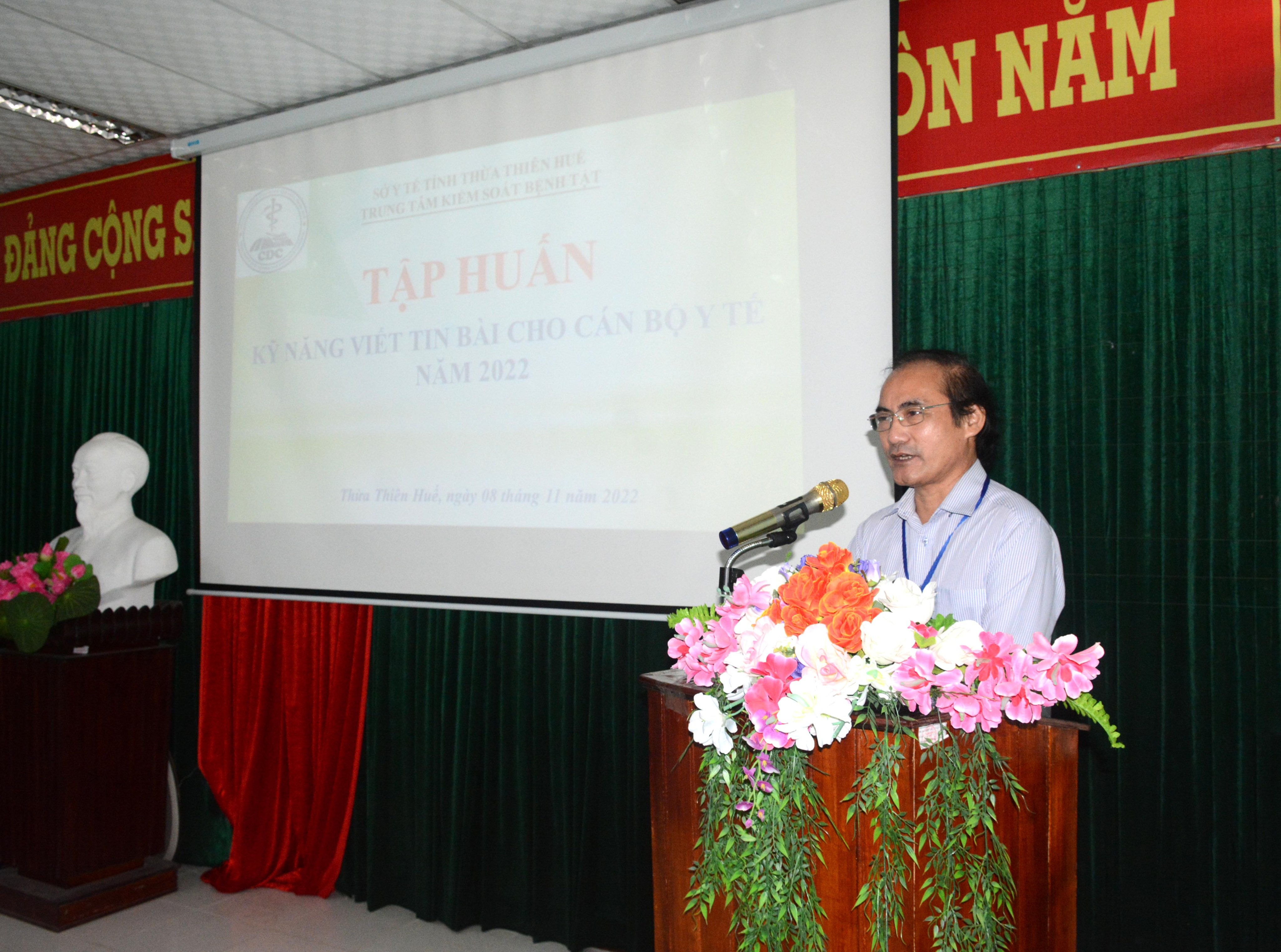 Thực hiện kế hoạch phối hợp giữa Khoa Truyền thông GDSK và Khoa PC HIV/AIDS về tăng cường truyền thông phòng chống HIV/AIDS trên các phương tiện thông tin đại chúng đồng thời nhằm giúp hoạt động phản ánh tin bài của cán bộ y tế tuyến tỉnh, huyện đạt được hiệu quả cao. Ngày 08/11/2022, Trung tâm Kiểm soát bệnh tật tỉnh Thừa Thiên Huế đã tổ chức lớp tập huấn kỹ năng viết tin bài cho cán bộ Y tế tuyến tỉnh, huyện. Tham dự khai mạc lớp tập huấn có BSCKII Hoàng Văn Thám - Phó giám đốc Trung tâm Kiểm soát bệnh tật tỉnh, khoa phòng chống HIV/AIDS, các giảng viên của Khoa truyền thông Giáo dục sức khỏe và 50 học viên là cán bộ Y tế đến từ tuyến tỉnh, huyện thành phố.