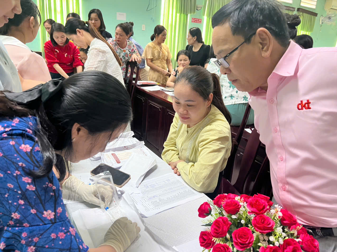 Tham dự lớp tập huấn có Bs.CKII. Hoàng Văn Thám – PGĐ Trung tâm kiểm soát bệnh tật phát biểu khai mạc lớp tập huấn; Ths. Bs.CKI Hà Thị Mỹ Dung - Trưởng khoa sức khoẻ sinh - Giảng viên; Bà Hà Quỳnh Chi - Bs Nguyễn Văn Liễn đại diện công ty DKT Mekong cùng 60 học viên là bác sĩ, nữ hộ sinh đang thực hiện công tác Chăm sóc sức khoẻ sinh sản tại các Trung tâm y tế quận/ huyện/ thị xã; bệnh viện Trường Đại học Y Dược; Hội kế hoạch hoá gia đình thành phố.