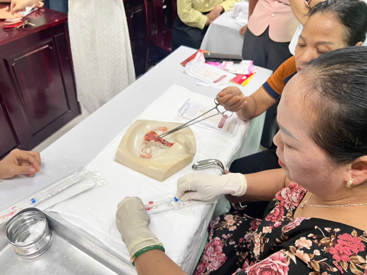 Lớp tập huấn đã chú trọng nội dung thực hành Kỹ thuật đặt và tháo dụng cụ tử cung. Các nội dung thực hành bao gồm: xem clip mô tả quá trình tư vấn trước sau khi đặt dụng cụ tử cung (DCTC), quy trình đặt DCTC; chia nhóm thực hành trên mô hình theo bảng kiểm. Các học viên được thực hành kỹ thuật lắp DCTC thành thạo, đặt đúng kỹ thuật dưới sự giám sát của nhóm giảng viên nhằm đảm bảo học viên sau khi được đào tạo, tập huấn sẽ triển khai hiệu quả kỹ thuật tại cơ sở y tế đang công tác.