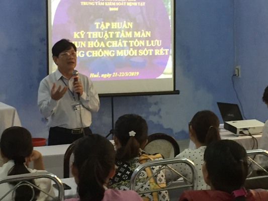 Trong 2 ngày 21-22/3/2019 Trung tâm Kiểm soát bệnh tật tổ chức lớp tập huấn Kỹ thuật tẩm màn và phun tồn lưu hóa chất diệt muỗi phòng chống sốt rét cho cán bộ chuyên trách phòng chống sốt rét của 31 xã trọng điểm của các huyện A Lưới, Nam Đông, Phú Lộc, Phong Điền và thị xã Hương Trà