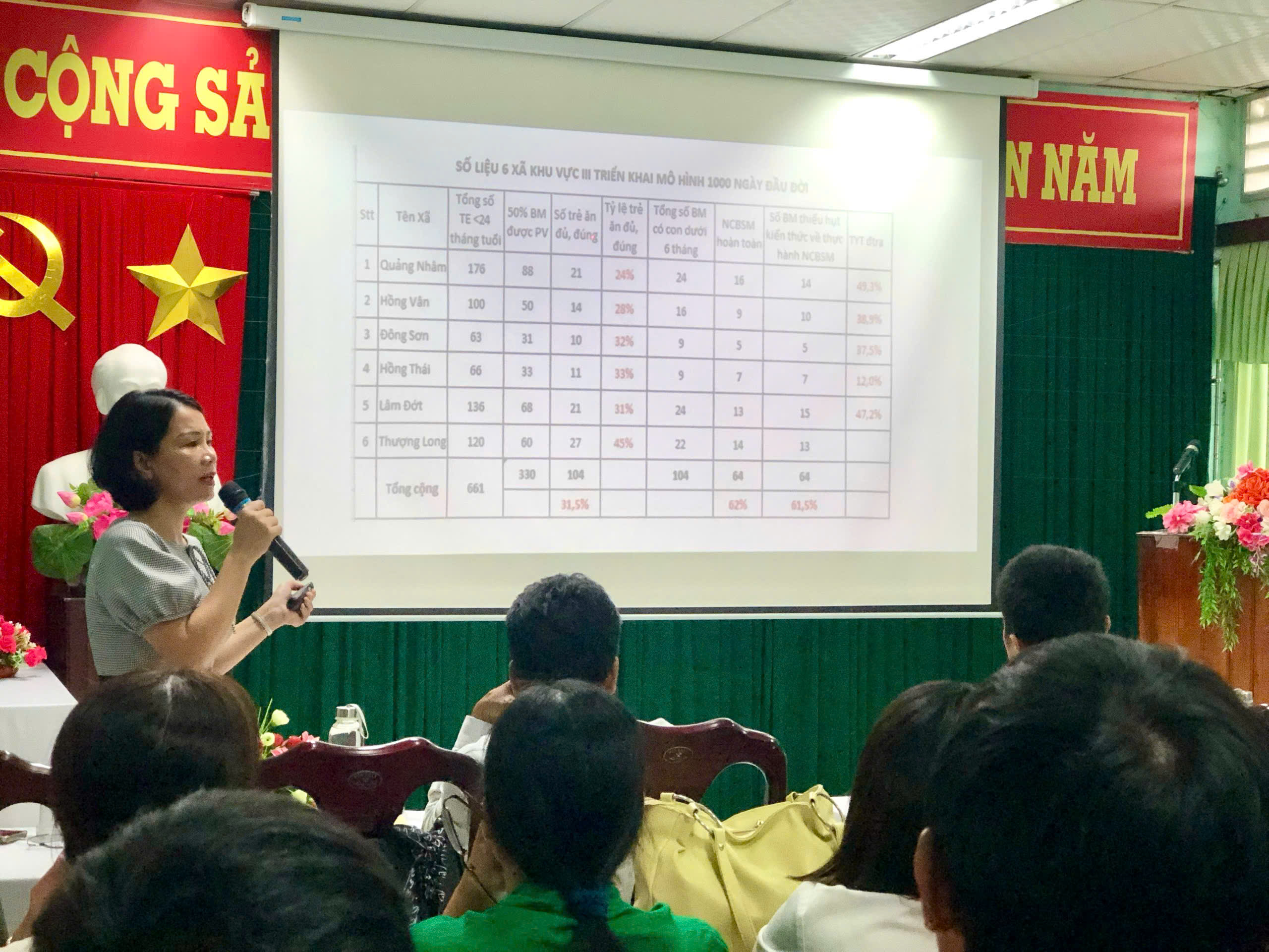 Lớp tập huấn có sự tham gia của gần 55 học viên là những cán bộ trực tiếp thực hiện chương trình, các học viên đã được Bs. CKI Lê Thị Sông Hương – Trưởng khoa PCBKLN-DD và các cán bộ khoa truyền đạt các nội dung liên quan đến đánh giá tình trạng dinh dưỡng và sử dụng phần mềm thống kê Y tế; tổ chức tẩy giun cho trẻ em từ 24-72 tháng tuổi bị suy dinh dưỡng. Đồng thời, phổ biến một số nội dung sẽ triển khai trong thời gian đến trong khuôn khổ các hoạt động của chương trình Mục tiêu quốc gia giảm nghèo bền vững.