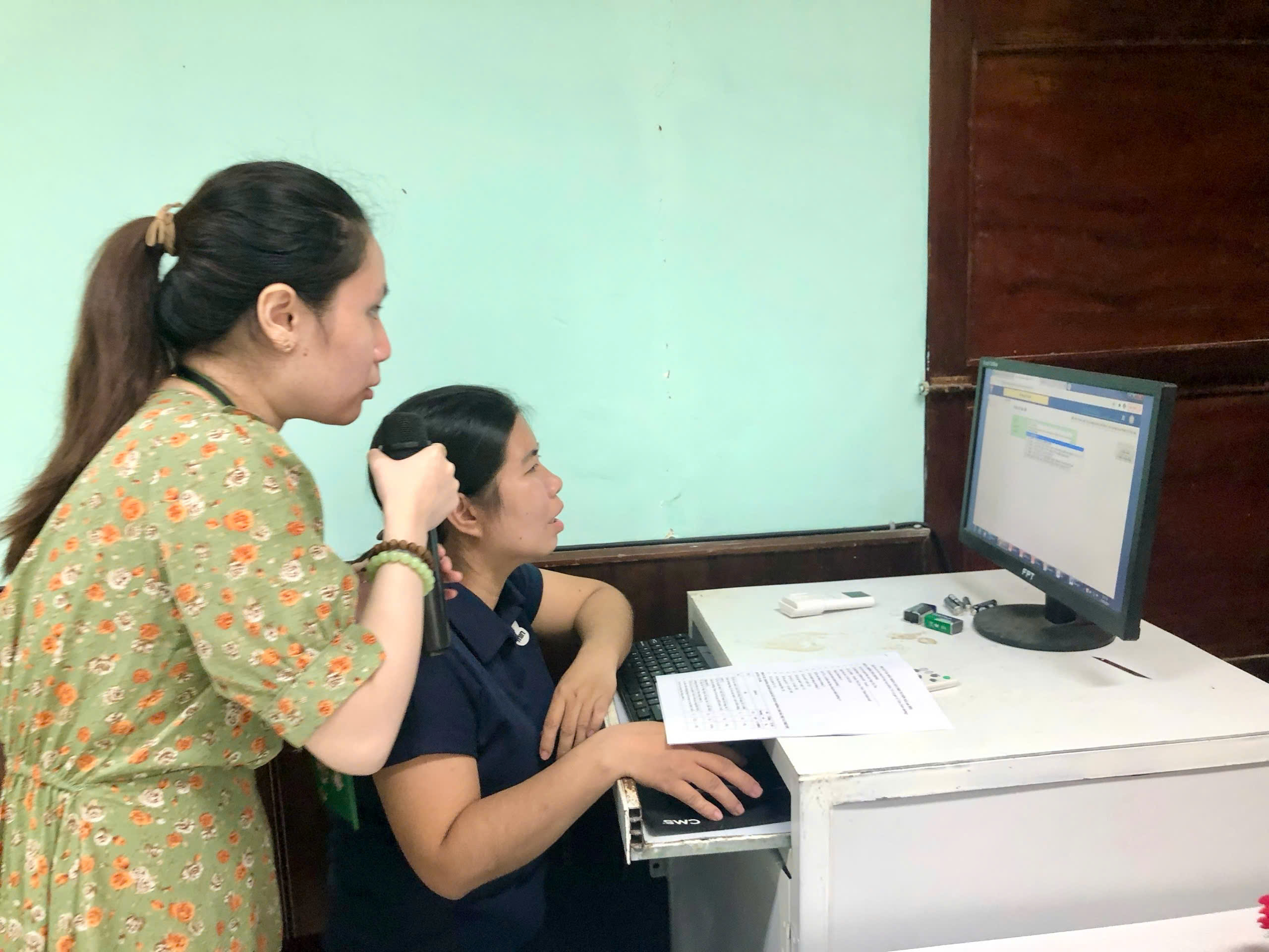 Học viên tuyến xã tham gia nhập liệu trên phần mềm dành cho tuyến xã