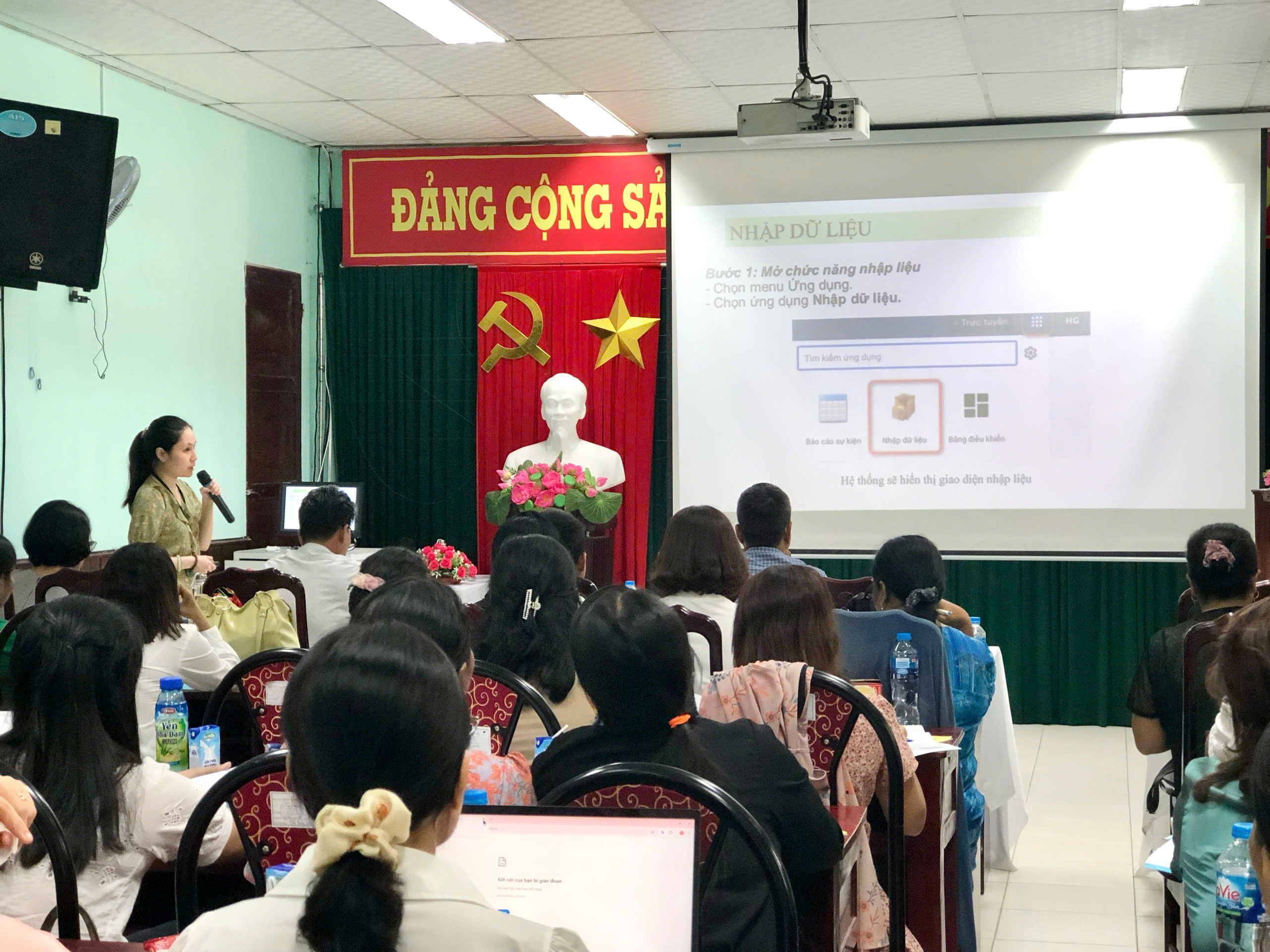 Học viên tuyến huyện tham gia nhập liệu trên phần mềm dành cho tuyến huyện