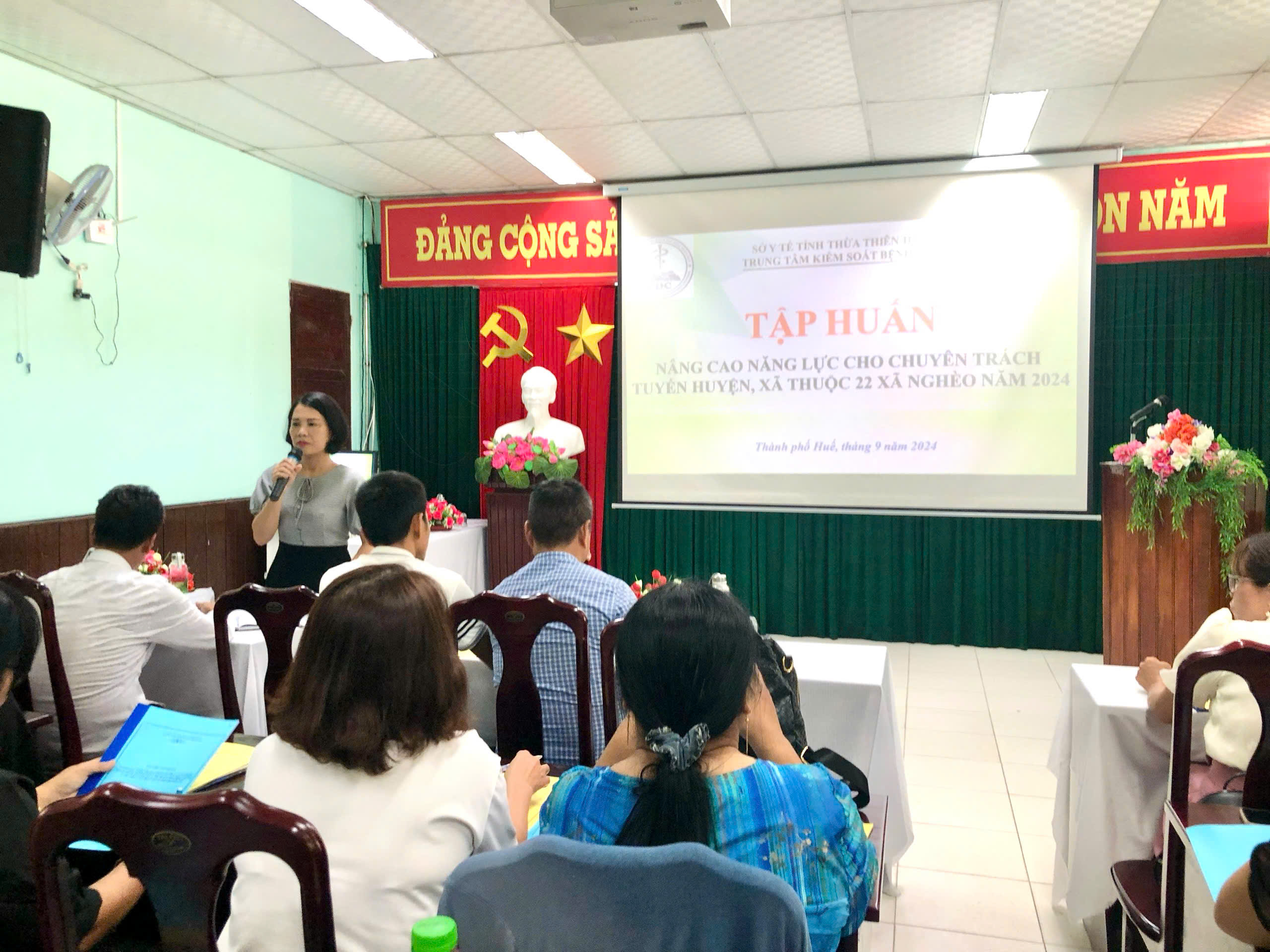 Thực hiện Kế hoạch số 121/KH-UBND ngày 25/3/2022 của UBND tỉnh Thừa Thiên Huế về việc thực hiện Chương trình mục tiêu quốc gia giảm nghèo bền vững giai đoạn 2021-2025, trên địa bàn tỉnh Thừa thiên Huế. Ngày 16/9/2024, Trung tâm Kiểm soát bện tật tỉnh tổ chức lớp tập huấn nâng cao năng lực cho chuyên trách tuyến huyện, xã thuộc 22 xã nghèo