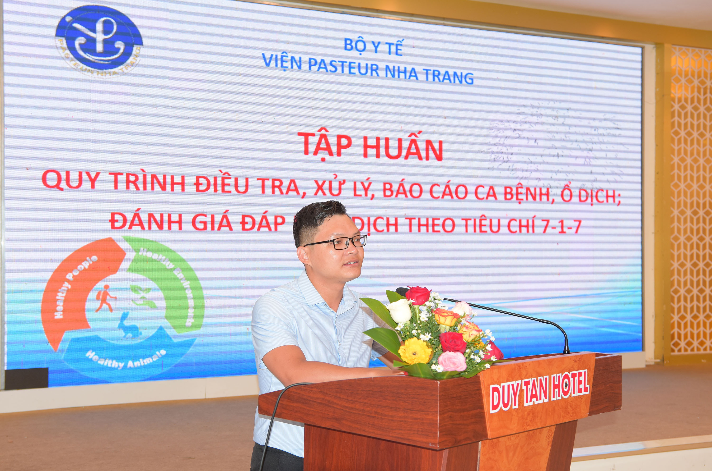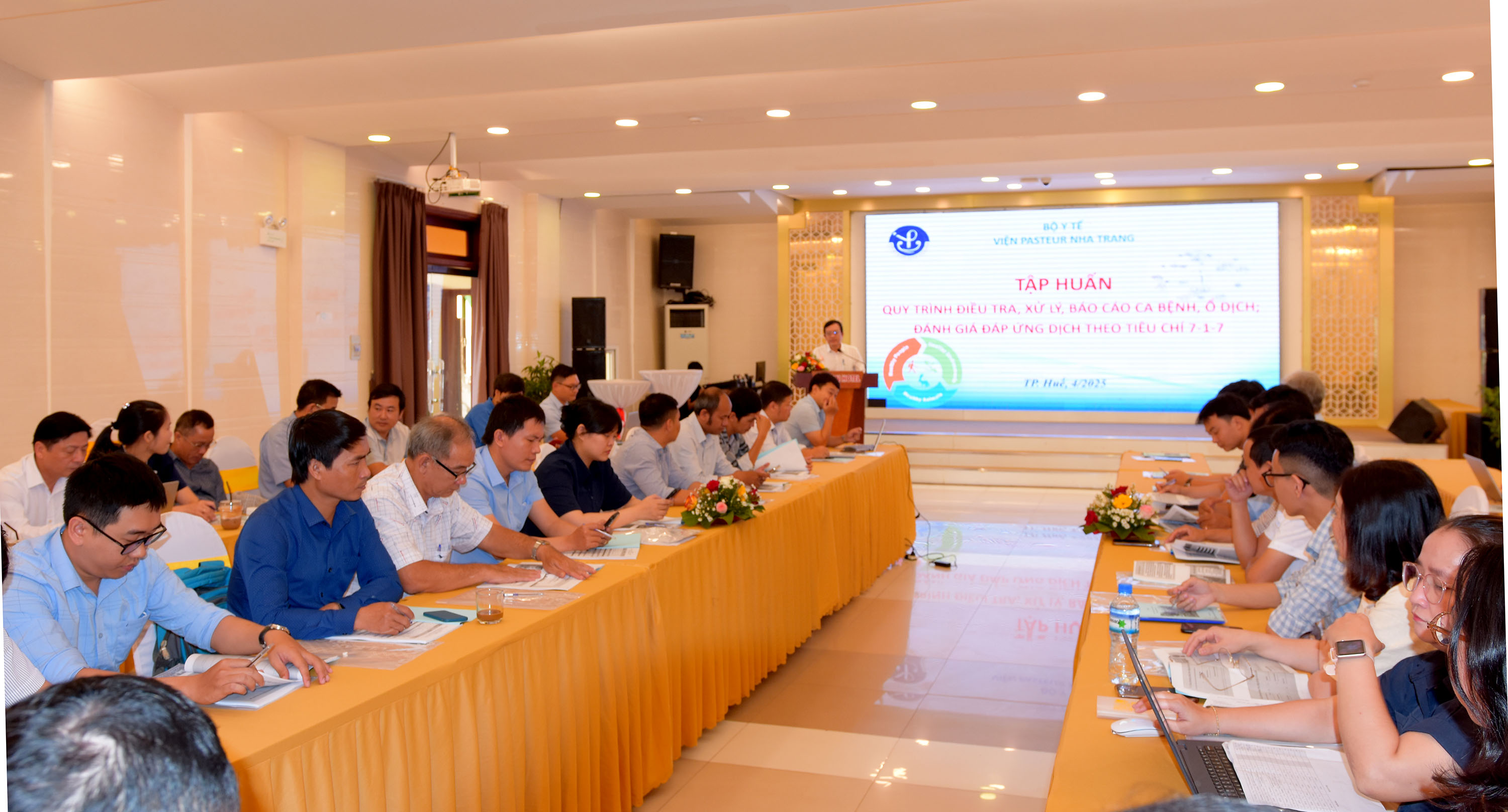 Trong 2 ngày 24-25/4, tại thành phố Huế, Viện Pasteur Nha Trang tổ chức khóa tập huấn “Quy trình điều tra, xử , báo cáo ca bệnh /ổ dịch, đánh giá đáp ứng theo mục tiêu 7-1-7”. Tham dự lớp tập huấn có lãnh đạo, cán bộ/nhân viên Khoa PCBTN - KSTCT (Trung tâm KSBT thành phố Huế) và cán bộ phụ trách/ chuyên trách phòng chống dịch bệnh của 9 TTYT các quận/huyện/thị xã trên địa bàn thành phố Huế.