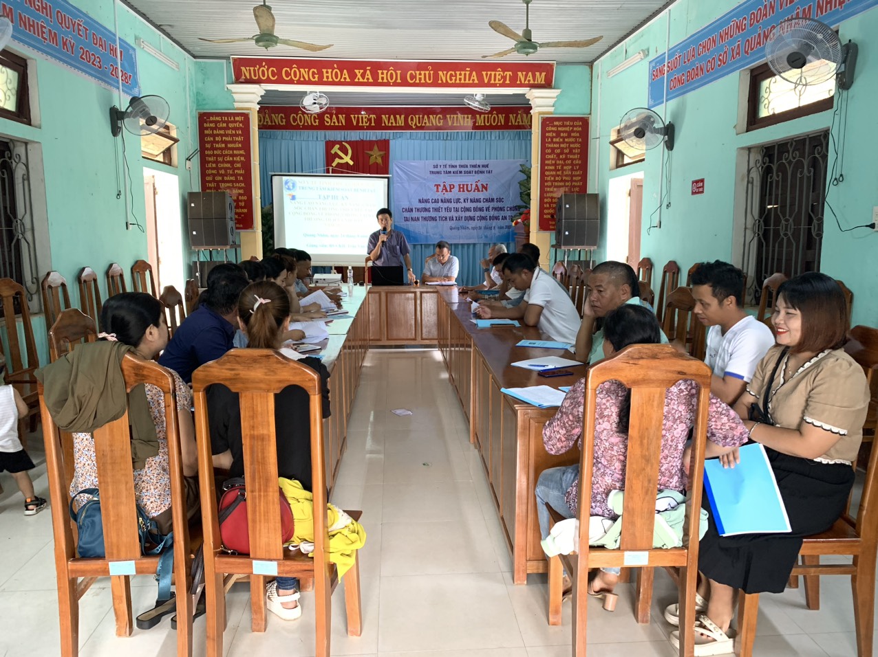 Ngày 24 tháng 8 năm 2023, Trung tâm Kiểm soát bệnh tật tỉnh Thừa Thiên Huế phối hợp với Trung tâm Y tế huyện A Lưới, Uỷ ban nhân dân và Trạm y tế xã Quảng Nhâm tổ chức tập huấn nâng cao năng lực, kỹ năng chăm sóc chấn thương thiết yếu tại cộng đồng về phòng chống tai nạn thương tích. Đây là một trong những hoạt động trong chương tình phòng chống tai nạn thương tích năm 2023 trên địa bàn tỉnh Thừa Thiên Huế. Hơn 30 học viên là cán bộ chủ chốt đầy đủ các thành phần của xã Quảng Nhâm tham dự tập huấn.