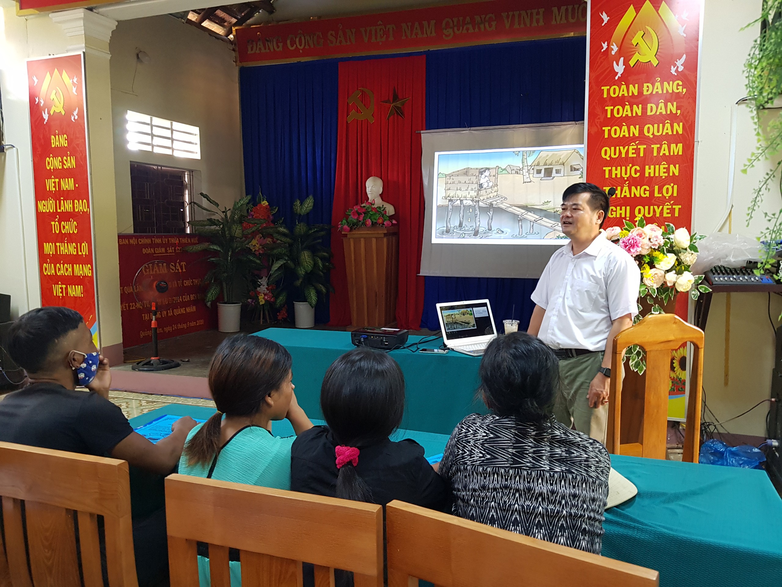 Ngày 01/10/2020 Trung tâm Kiểm soát bệnh tật tỉnh phối hợp với Trung tâm y tế huyện A Lưới, UBND xã, Trạm Y tế xã Quảng Nhâm tổ chức Tập huấn nâng cao năng lực, nhận thức cho cộng đồng và người dân về kỹ thuật xây dựng, sử dụng và bảo quản nhà tiêu hợp vệ sinh kết hợp nghiệm thu và chi trả kinh phí xây dựng nhà tiêu cho người dân tại xã Quảng Nhâm và xã Hồng Bắc, huyện A Lưới.
