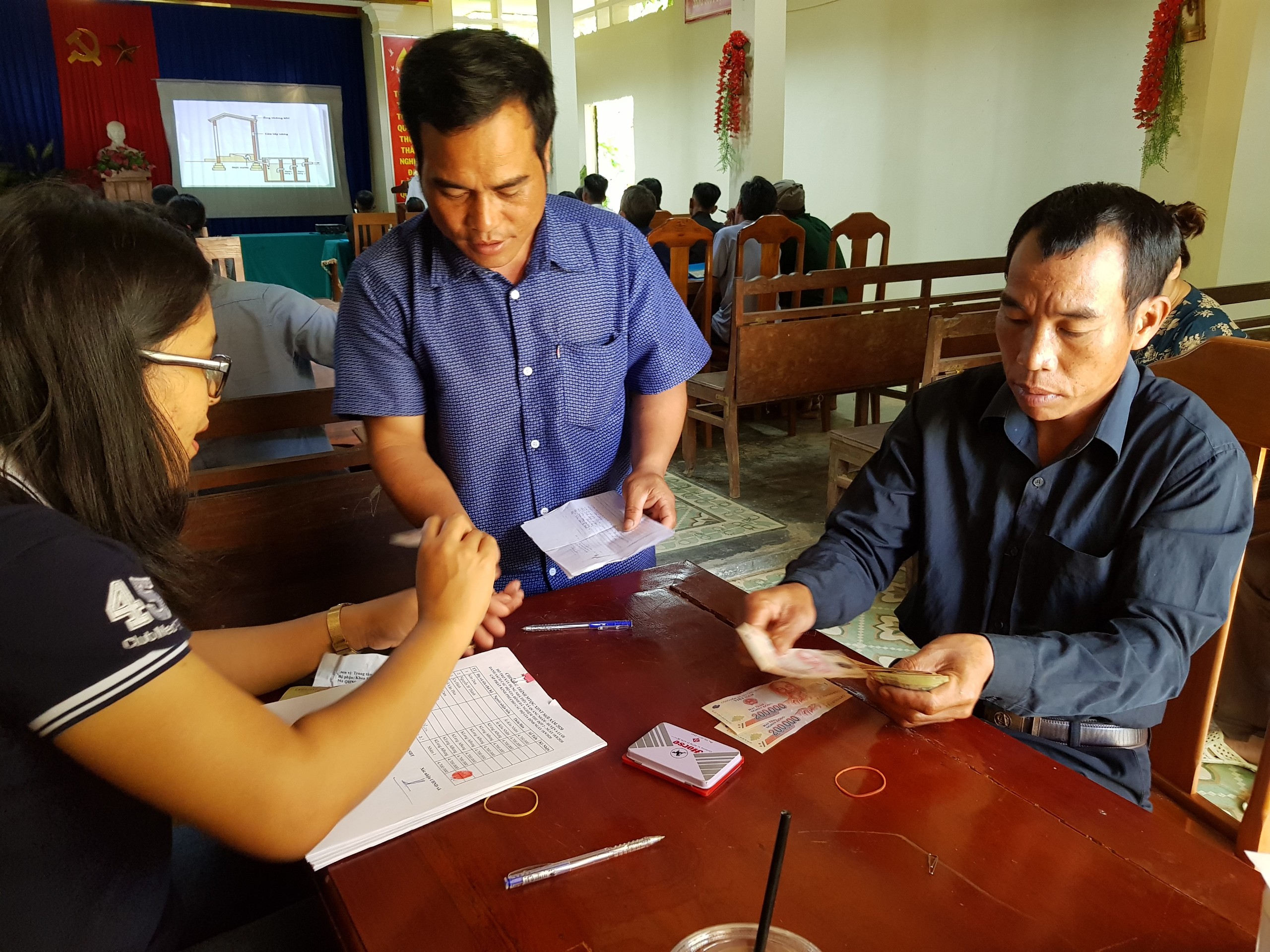 Đoàn tiến hành chi trả kinh phí cho các hộ gia đình