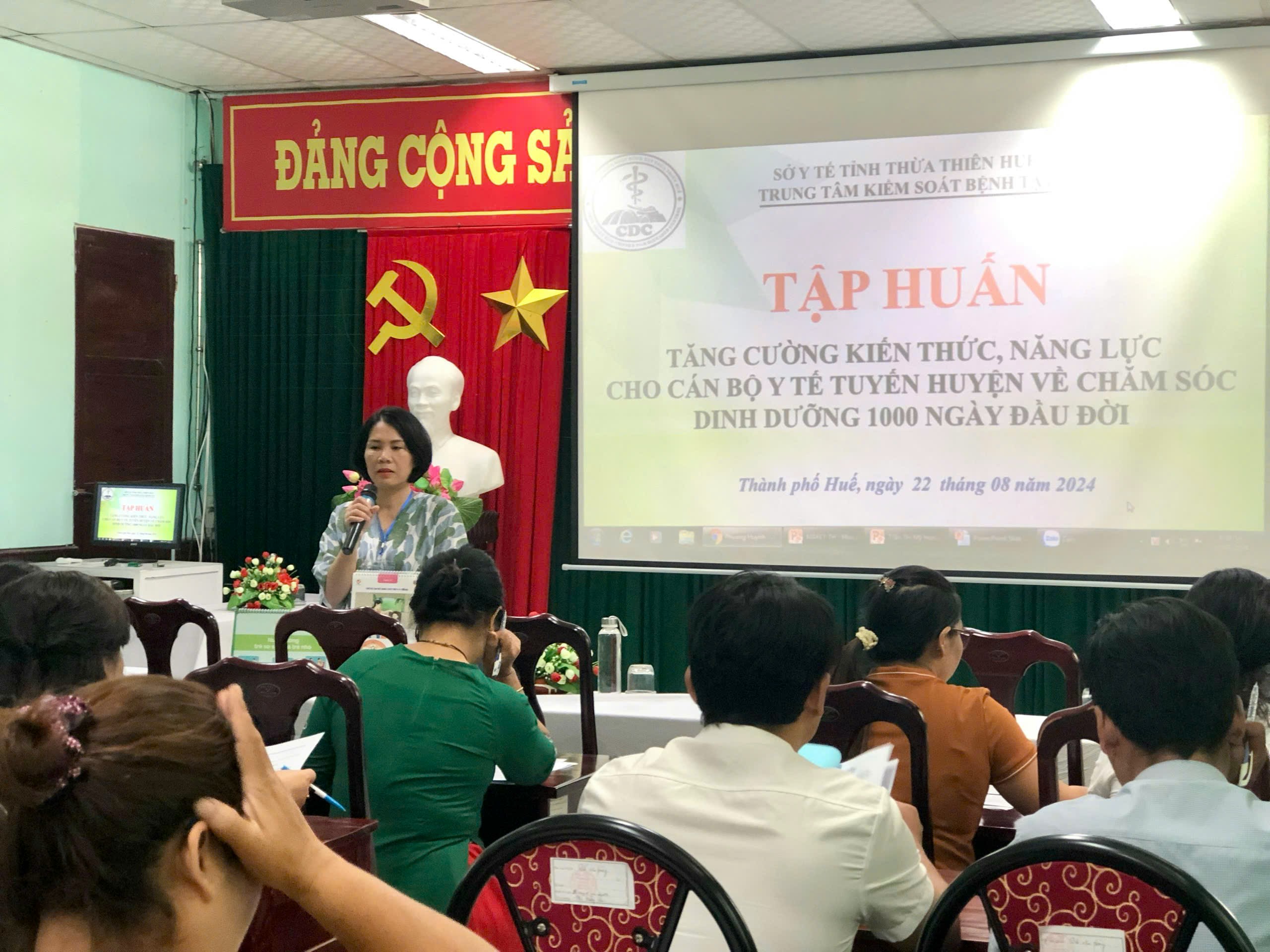 Ngày 22/8/2024, Trung tâm Kiểm soát bệnh tật tỉnh đã tổ chức lớp tập huấn nâng cao năng lực về chăm sóc dinh dưỡng trong 1000 ngày đầu đời cho chuyên trách tuyến huyện và 6 xã khu vực III được chọn triển khai mô hình 1000 ngày đầu đời (xã Hồng Thái, xã Quảng Nhâm, xã Lâm Đớt, xã Hồng Vân, xã Đông Sơn, xã Thượng Long).