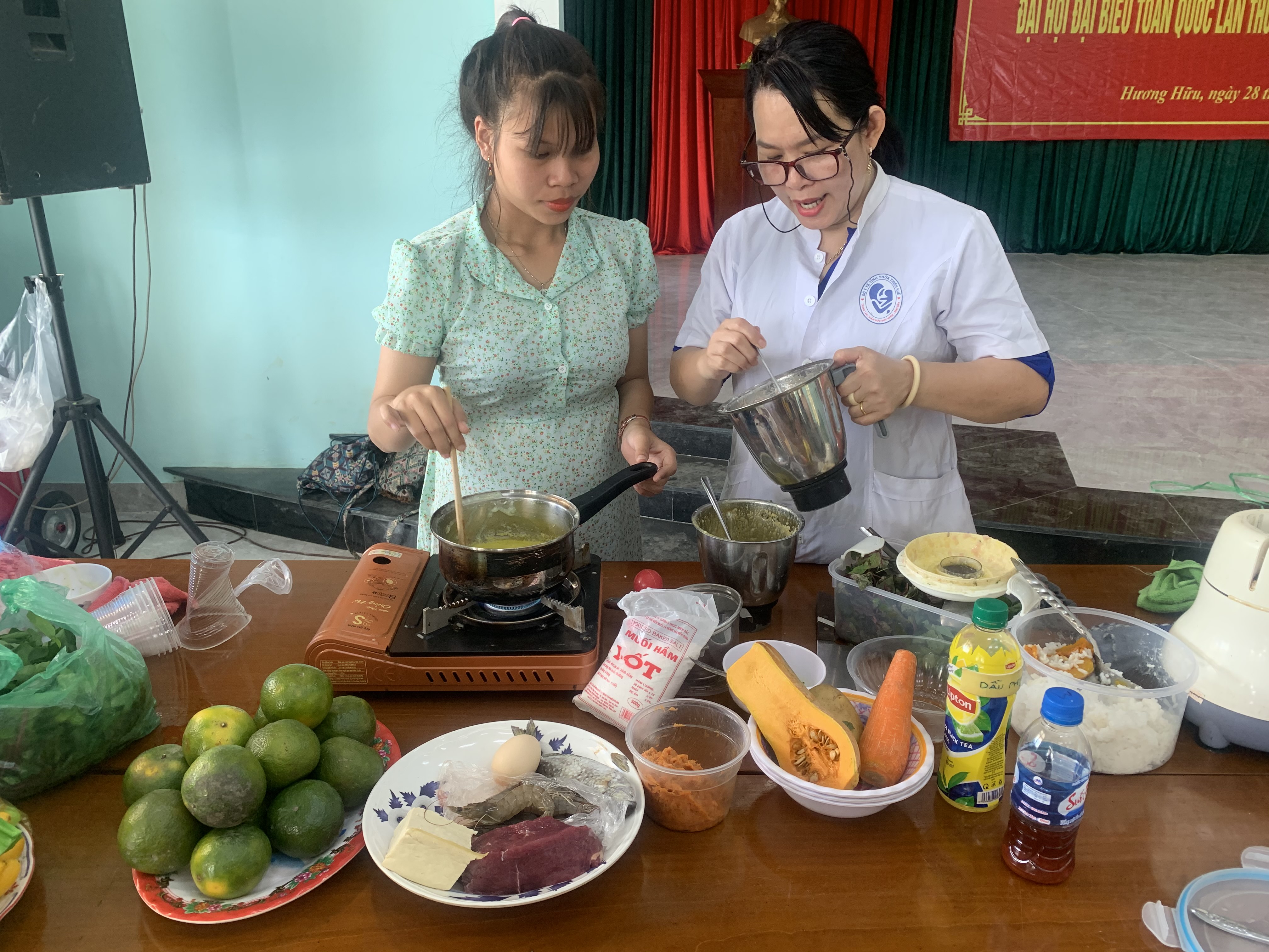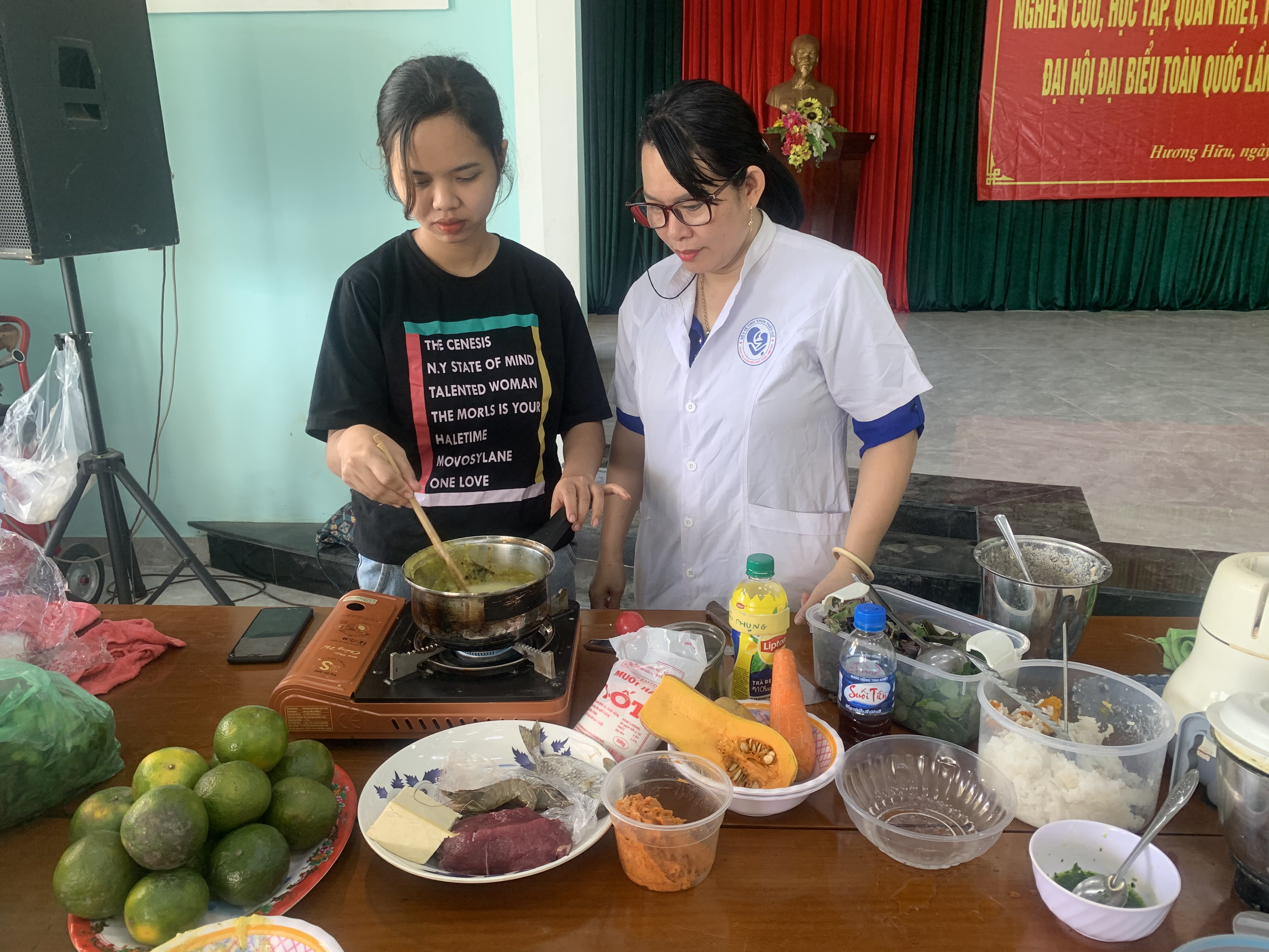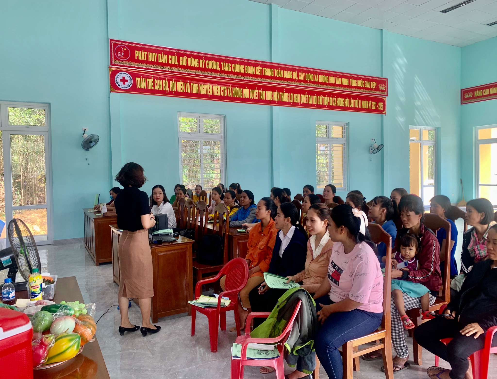 Tại buổi tập huấn các bà mẹ được hướng dẫn cách nuôi con bằng sữa mẹ, hướng dẫn kỹ thuật chế biến thức ăn bổ sung cho trẻ em. Nhằm nâng cao kiến thức nuôi con bằng sữa mẹ và thực hành dinh dưỡng cho bà mẹ có con dưới 5 về chăm sóc và nuôi dưỡng trẻ nhỏ góp phần giảm tỉ lệ suy dinh dưỡng thấp còi ở vùng miền núi .Các bà mẹ đã được giải đáp những thắc mắc và được hướng dẫn thực hành cách chế biến bữa ăn dinh dưỡng cho trẻ nhỏ.