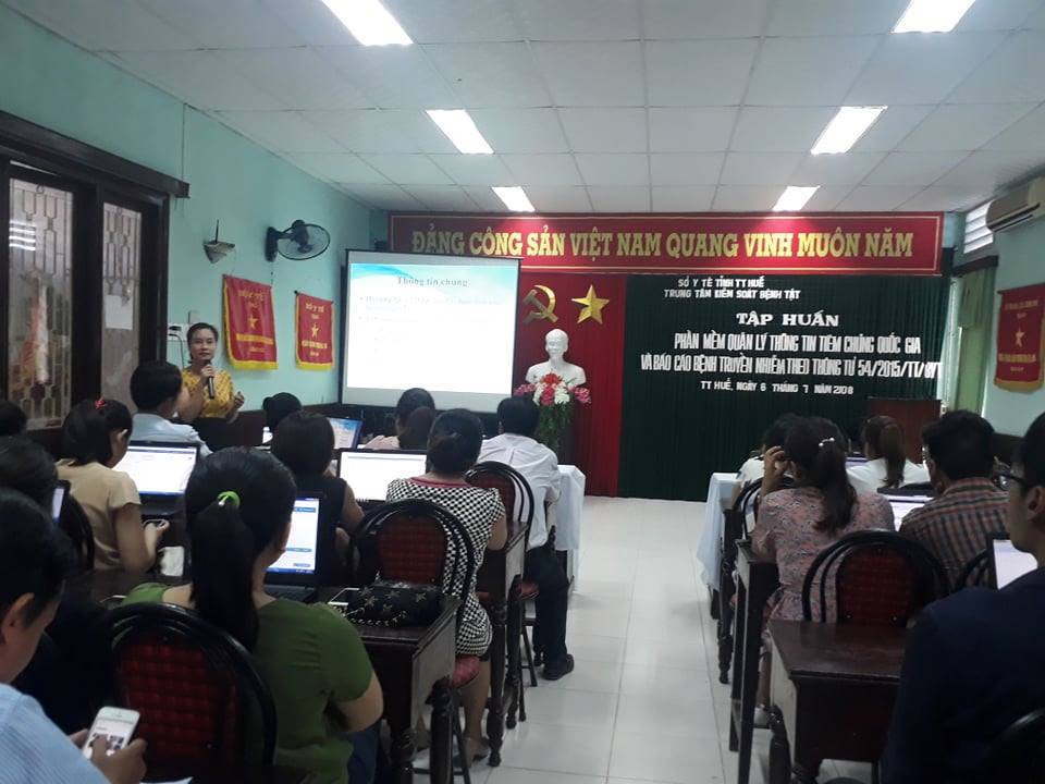 Ngày 06/7/2018, Trung tâm Kiểm soát bệnh tậttỉnh phối hợp với Trung tâm Y tế thành phố Huế tổ chức lớp tập huấnphần mêm báo cáo bệnh truyền nhiễm theo Thông tư 54/2015/TT-BYT và phần mềm quản lý, sử dụng hệ thống quản lý thông tin tiêm chủng cho cán bộ tuyến phường, xã và bệnh viện của Trung tâm Y tế thành phố Huế.