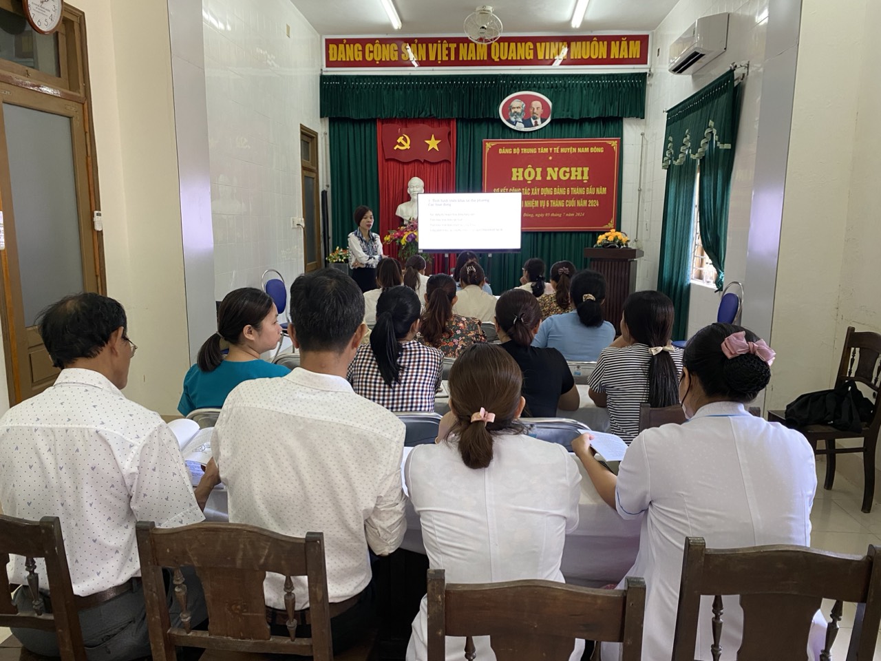 Ngày 08/7/2024 tại Hội trường Trung tâm y tế huyện Nam Đông, Khoa Sức khoẻ sinh sản -Trung tâm kiểm soát bệnh tật tỉnh tổ chức lớp tập huấn sàng lọc và dự phòng ung thư cổ tử cung cho cán bộ y tế hoạt động trong lĩnh vực sức khoẻ sinh sản tuyến cơ sở.