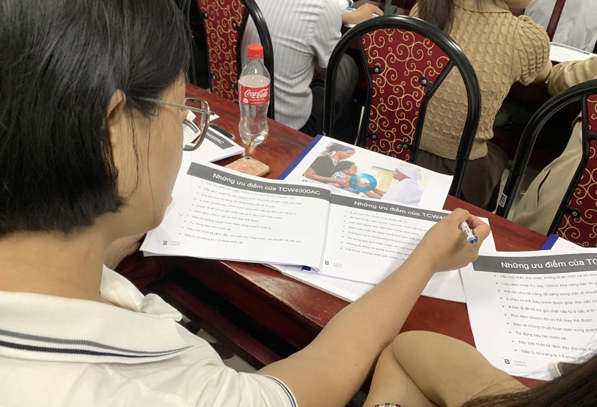 Tập huấn sử dụng, bảo dưỡng tủ lạnh chuyên dụng bảo quản vắc xin.
