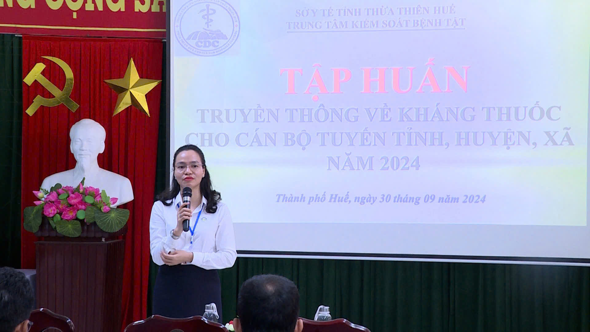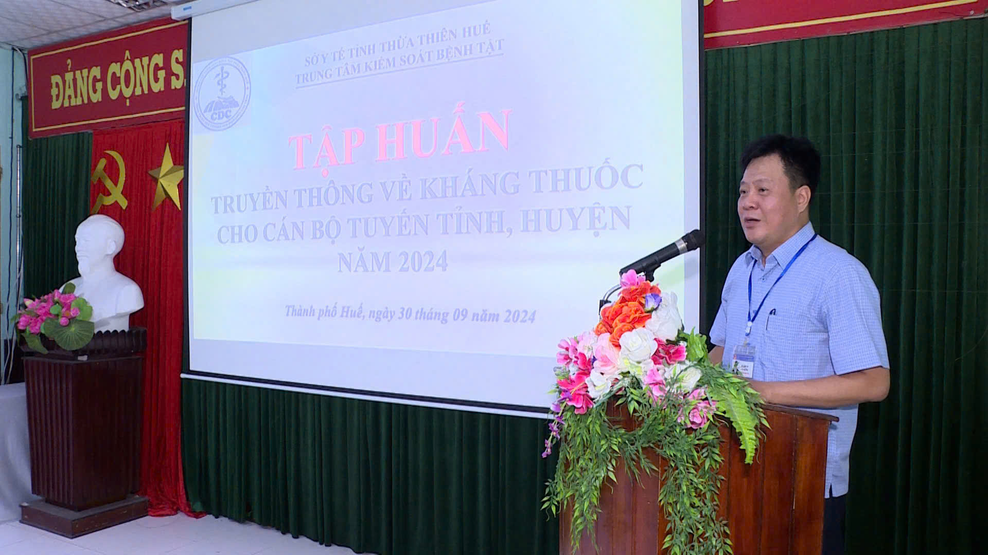 Thực hiện kế hoạch hoạt động thực hiện chiến lược Quốc gia về phòng chống kháng thuốc và chiến lược phát triển ngành Dược tại tỉnh Thừa Thiên Huế năm 2024. Ngày 30/9/2024, Trung tâm Kiểm soát bệnh tật tỉnh tổ chức lớp tập huấn truyền thông về Phòng chống kháng thuốc cho cán bộ tuyến xã, phường thuộc thành phố Huế. Tham dự lớp tập huấn có Ths.Bs Hồ Xuân Vũ – Phó Giám đốc Trung tâm Kiểm soát bệnh tật tỉnh; Ths Nguyễn Văn Cương - Trưởng khoa Truyền thông Giáo dục sức khoẻ Trung tâm Kiểm soát bệnh tật. Các giảng viên đến từ Phòng Nghiệp vụ Dược Sở Y tế, Khoa truyền thông Giáo dục sức khoẻ - Trung tâm Kiểm soát bệnh tật và cán bộ Y tế đến từ tuyến xã, phường thuộc trung tâm thành phố Huế.